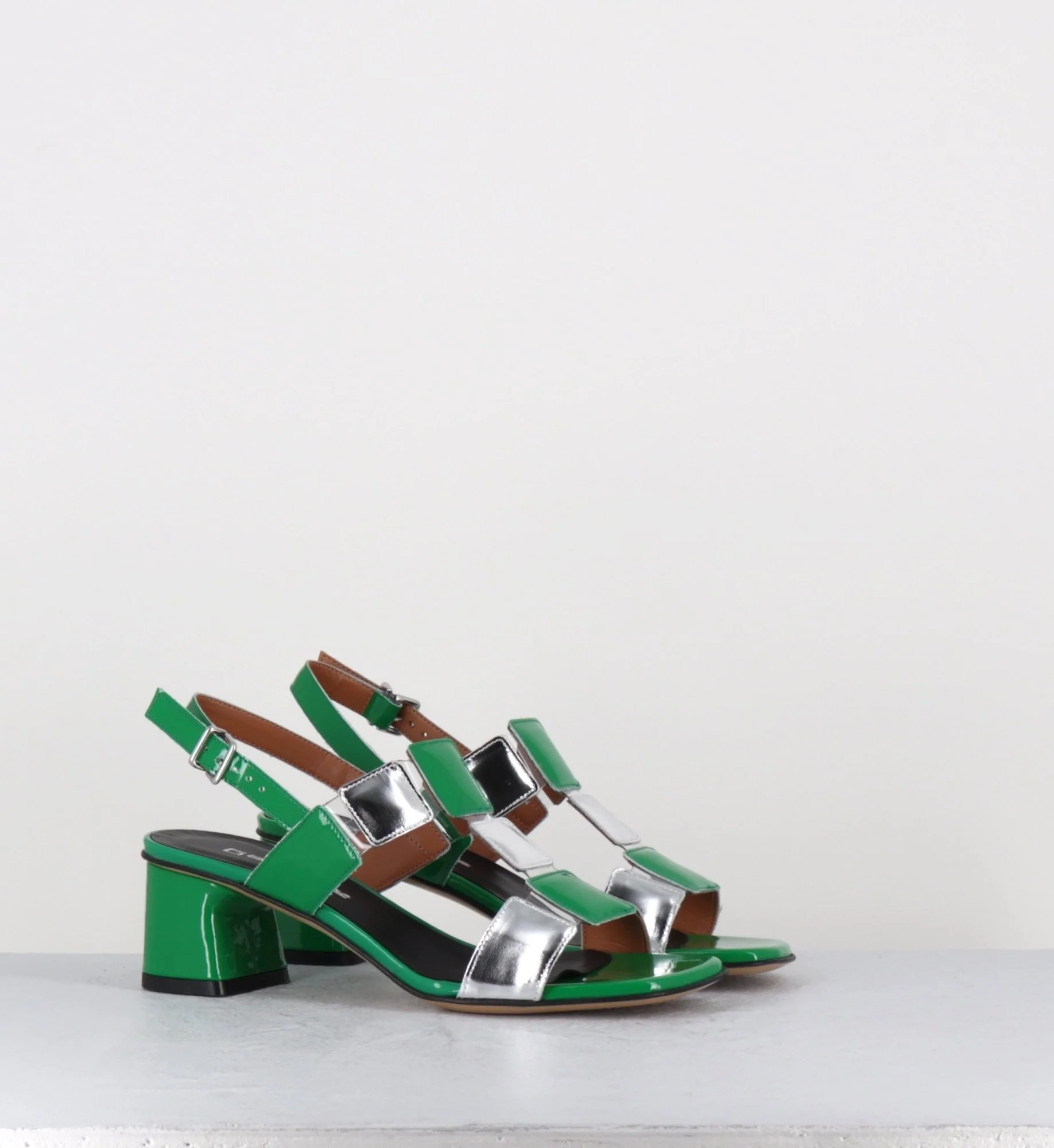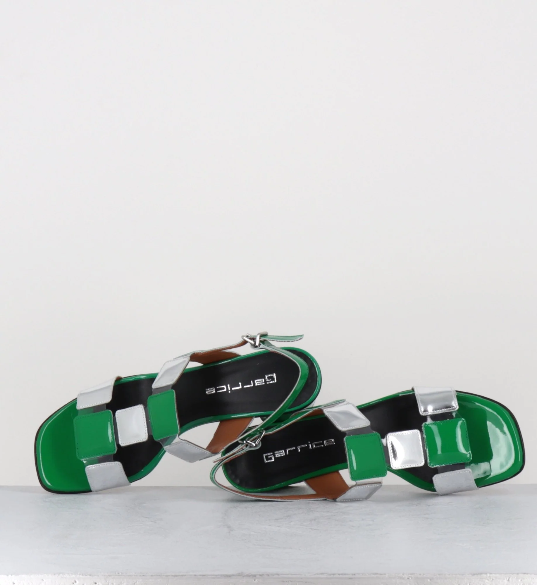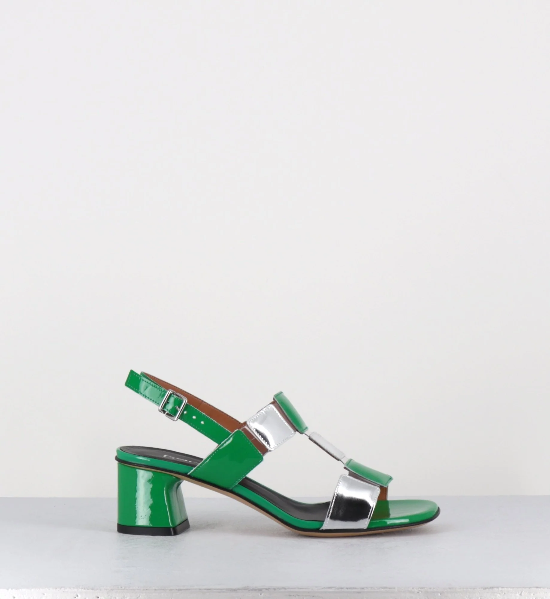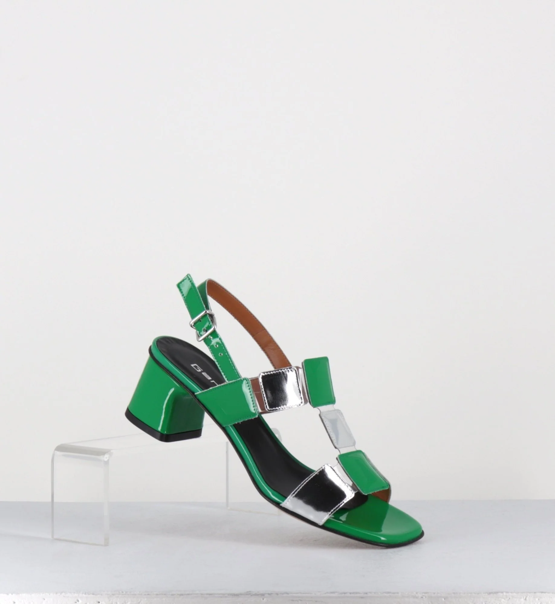 Sandales 60s bout carré en cuir vernis vert & argent – LEFAI7 VERDE ARGENTO
