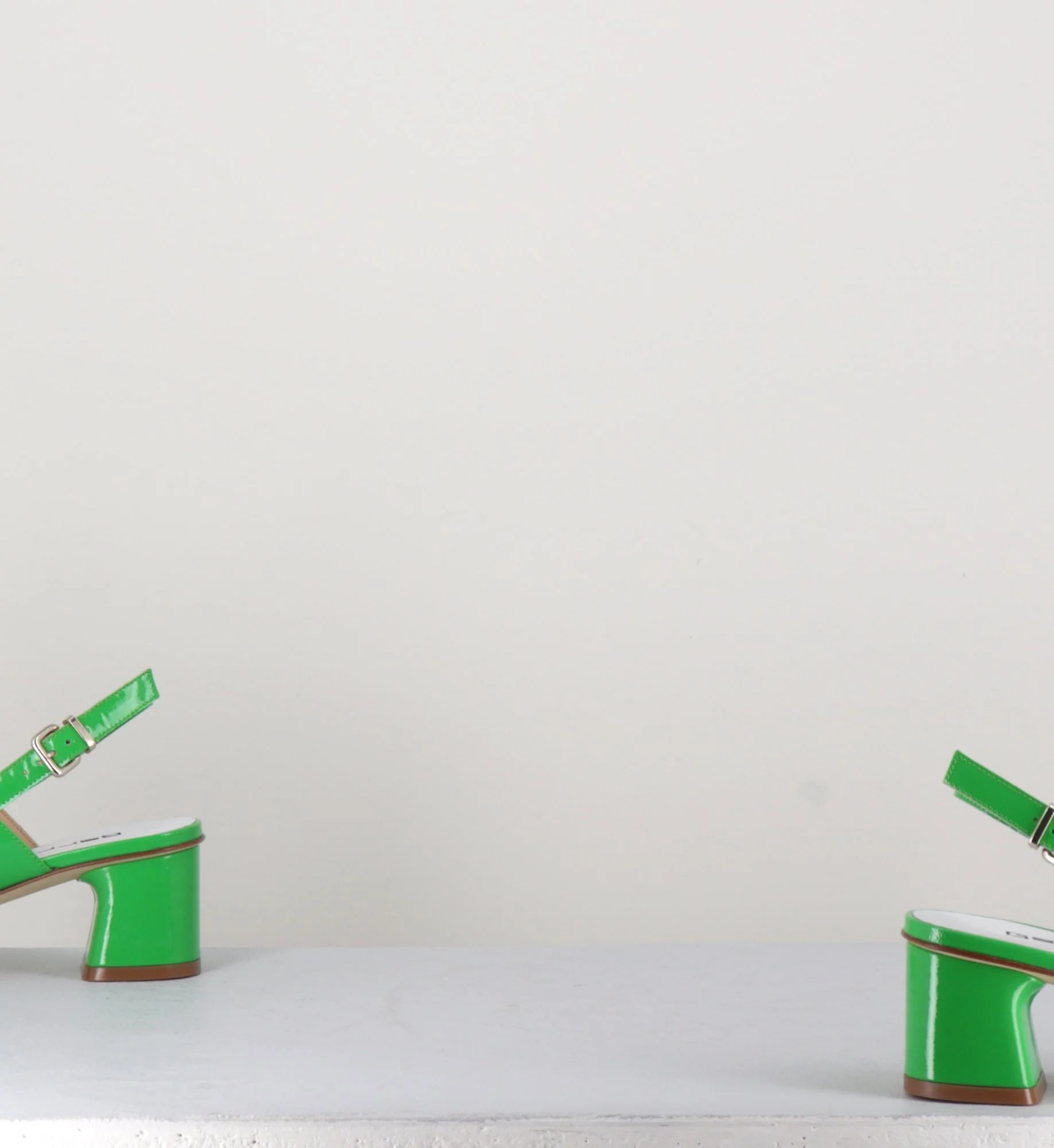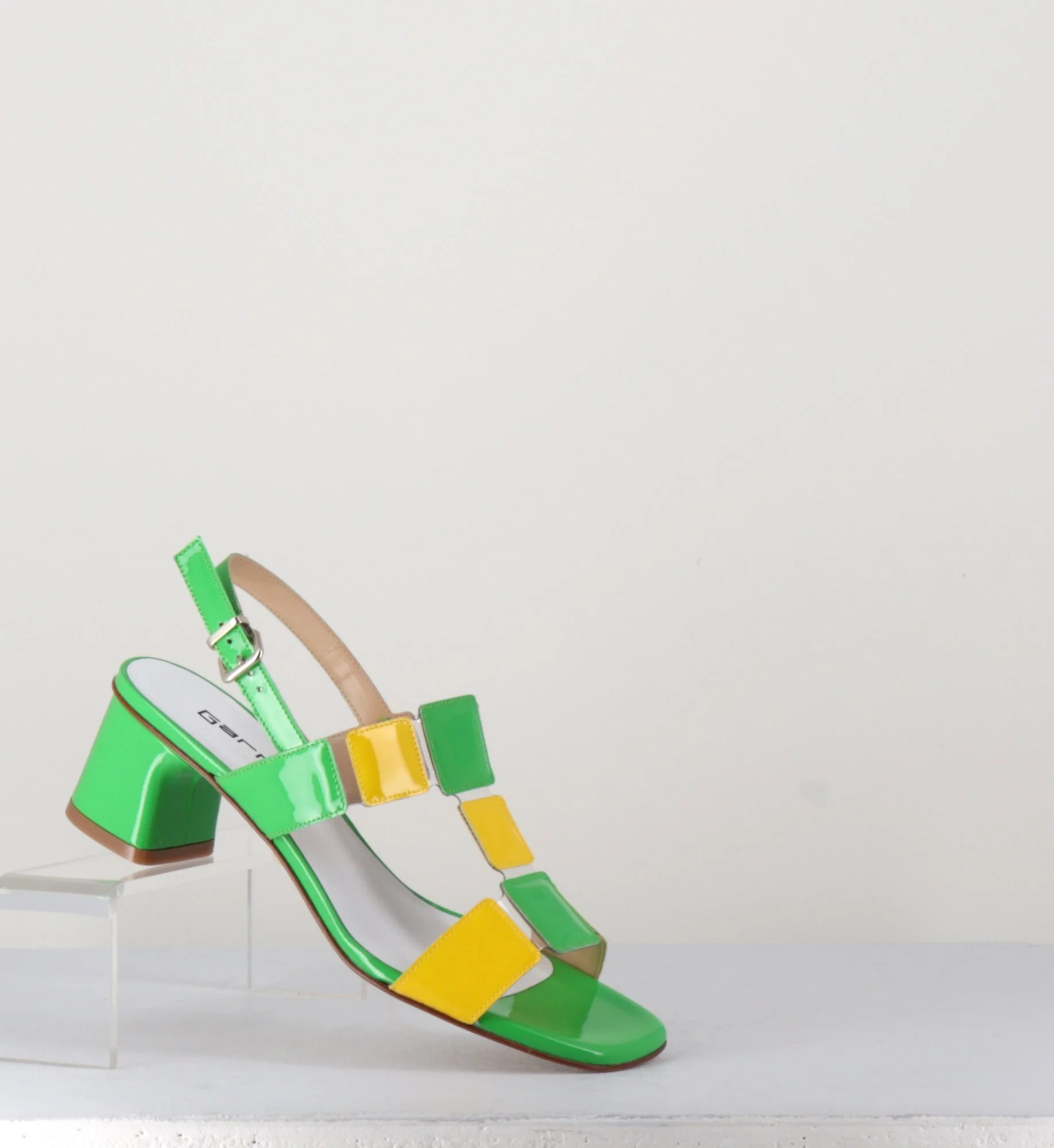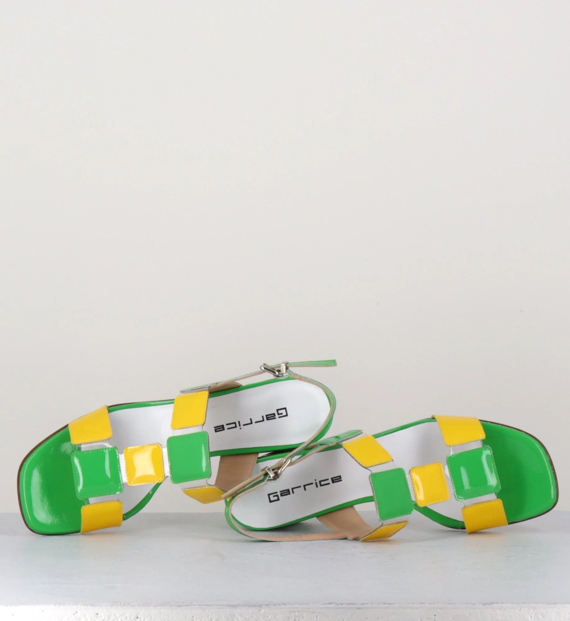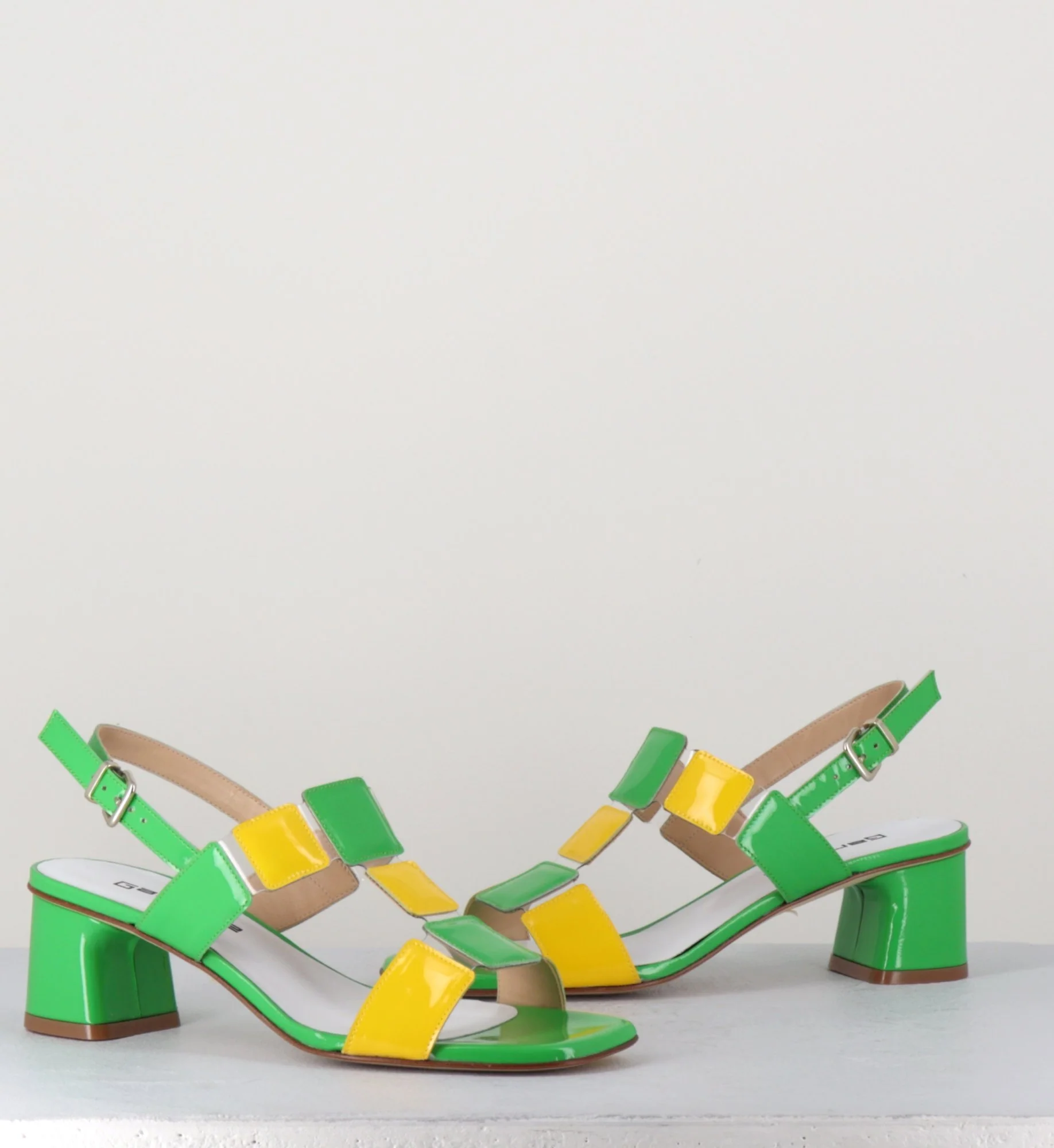 Sandales 60s bout carré en cuir vernis vert&jaune – 604 GREEN YELLOW