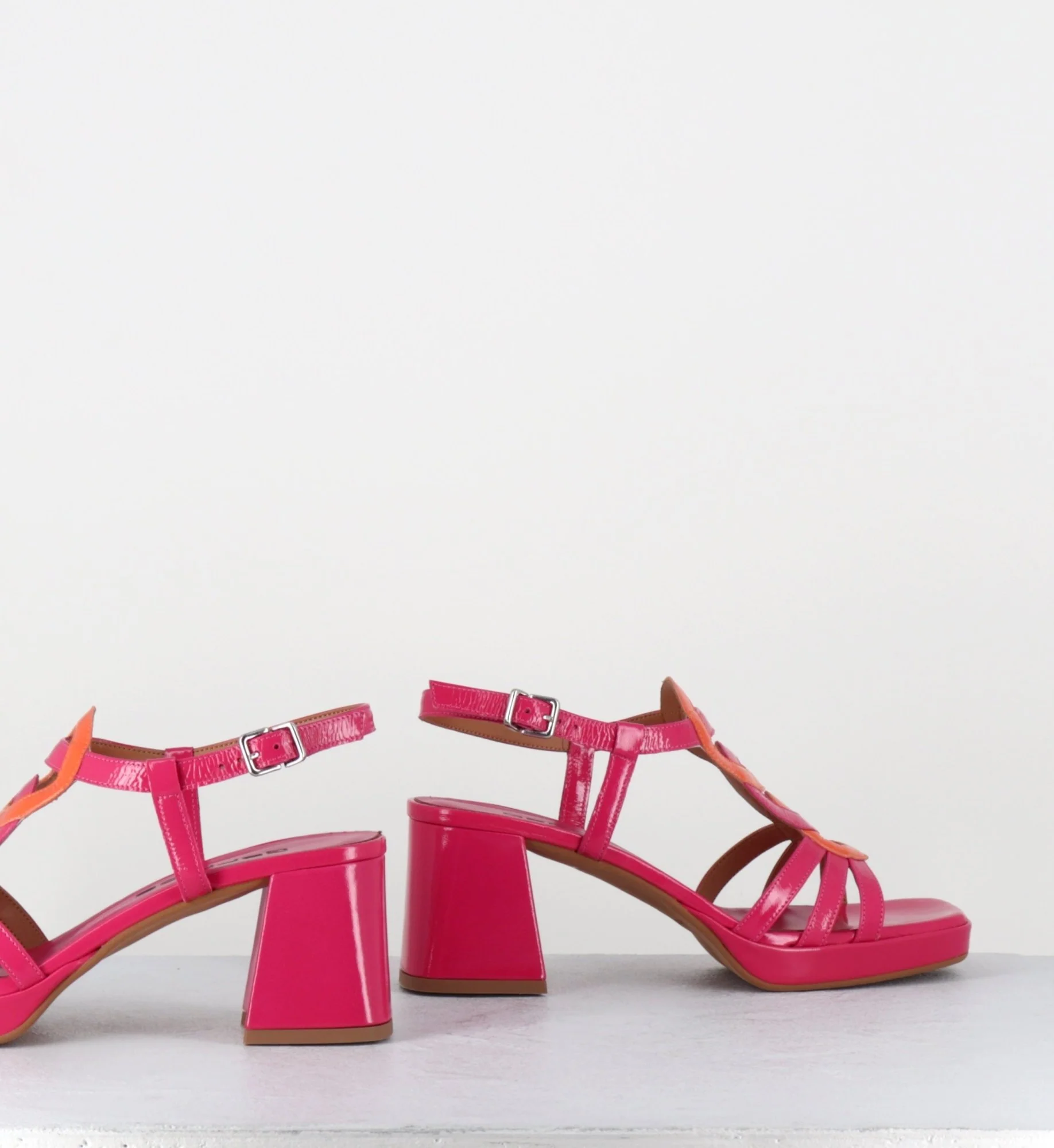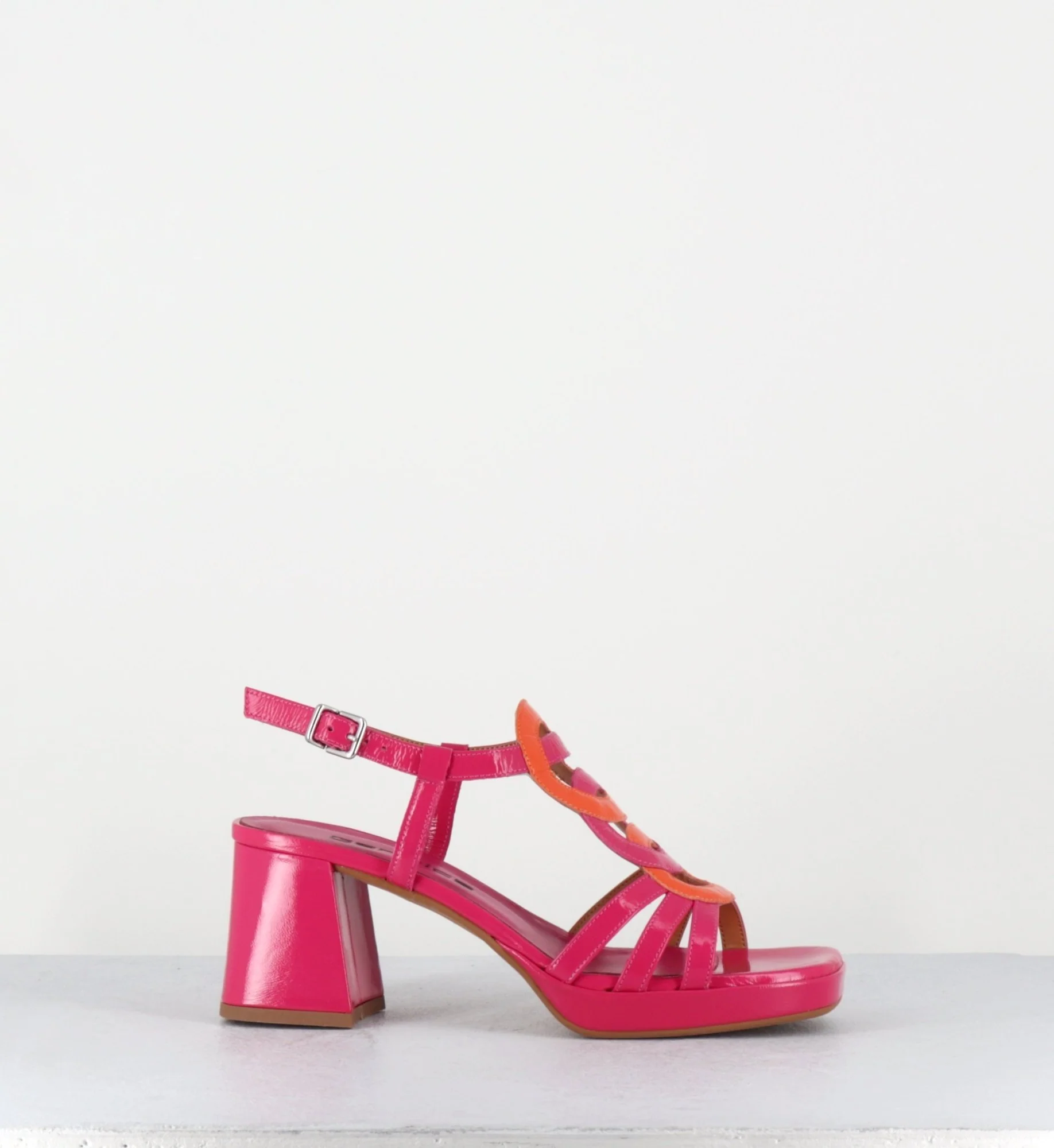 Sandales 70s en cuir vernis fuchsia & orange – TAGA24 FUXIA ORANGE