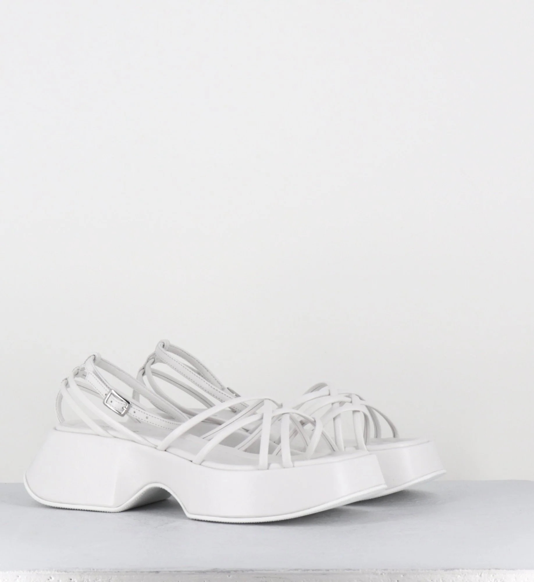 Sandales à plateforme en cuir blanc multi-brides – 1E1508D BONBON WHITE