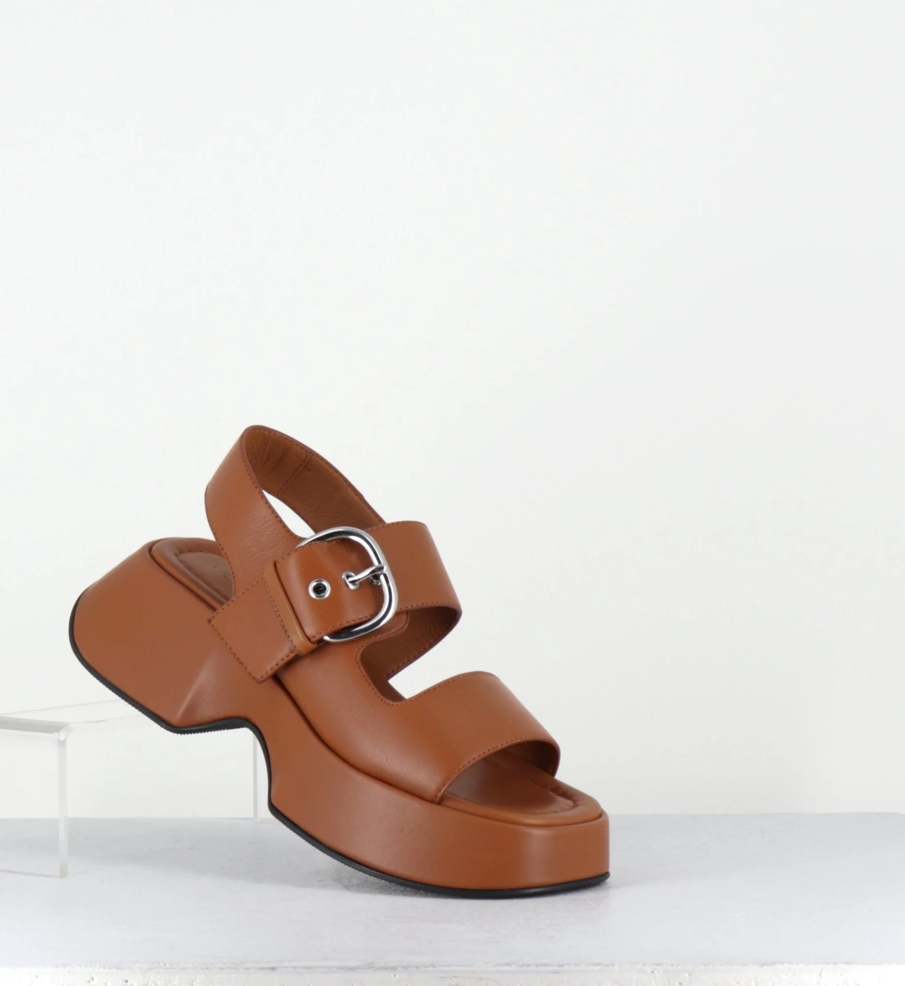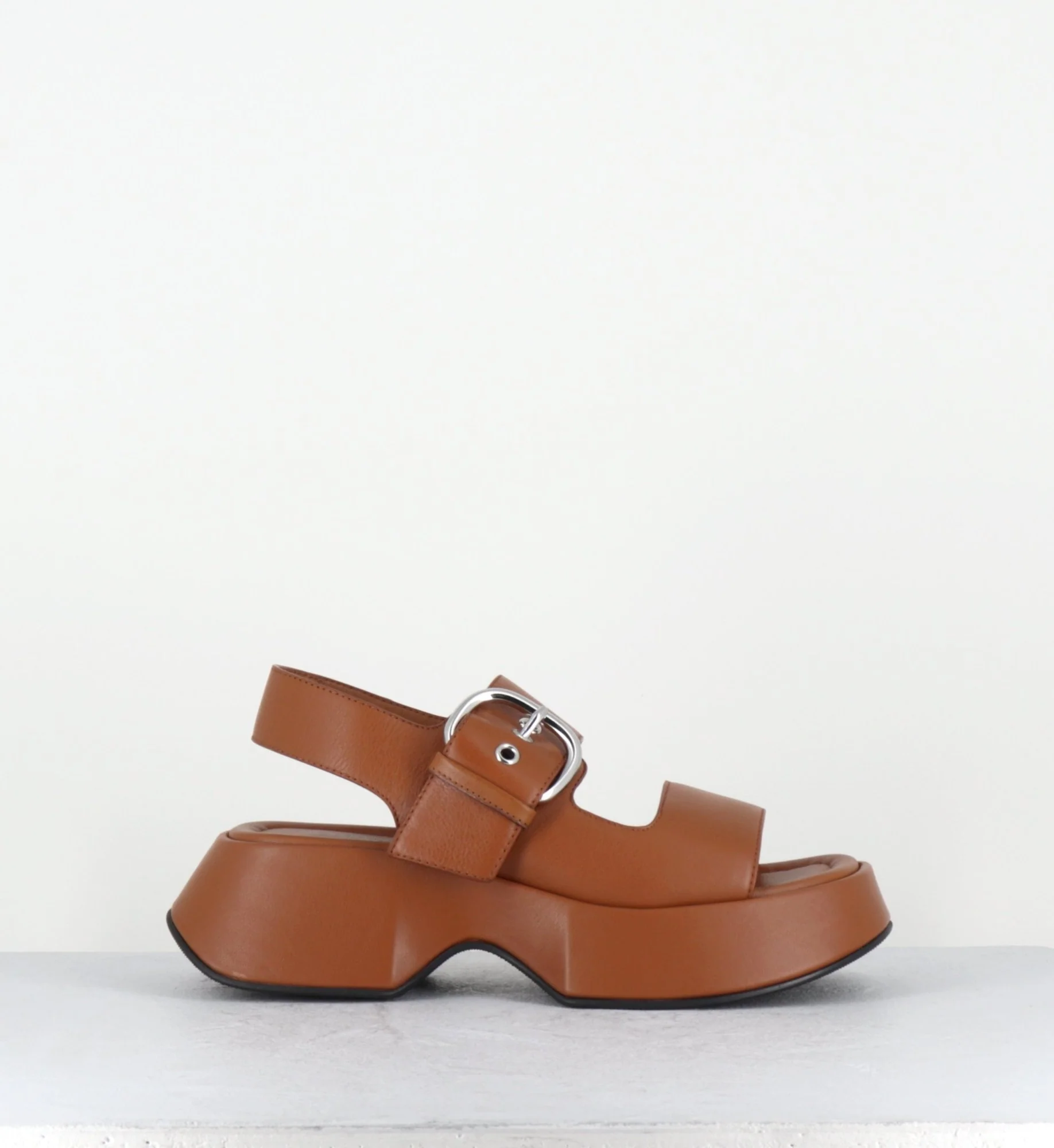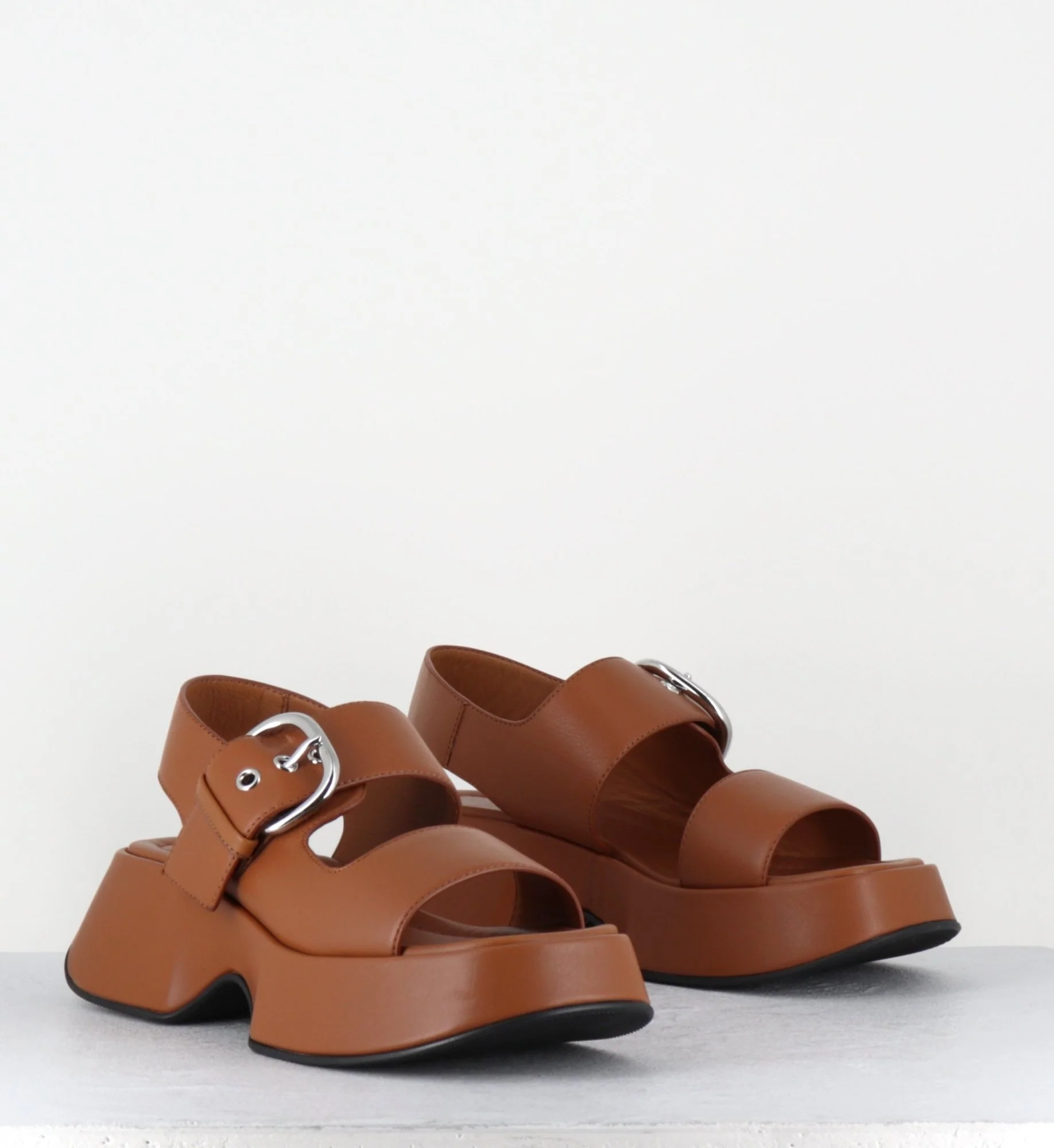 Sandales à plateforme en cuir camel & boucle argent – 1E1500D TRAVEL TOBACCO