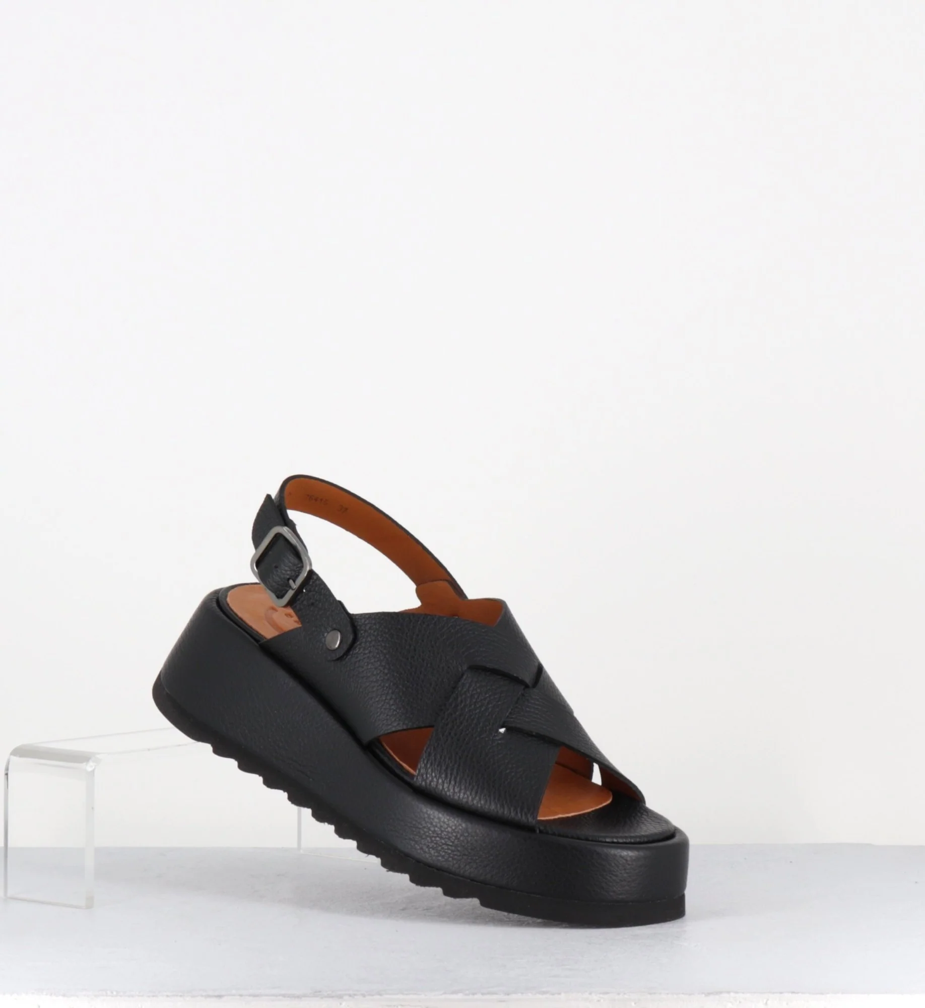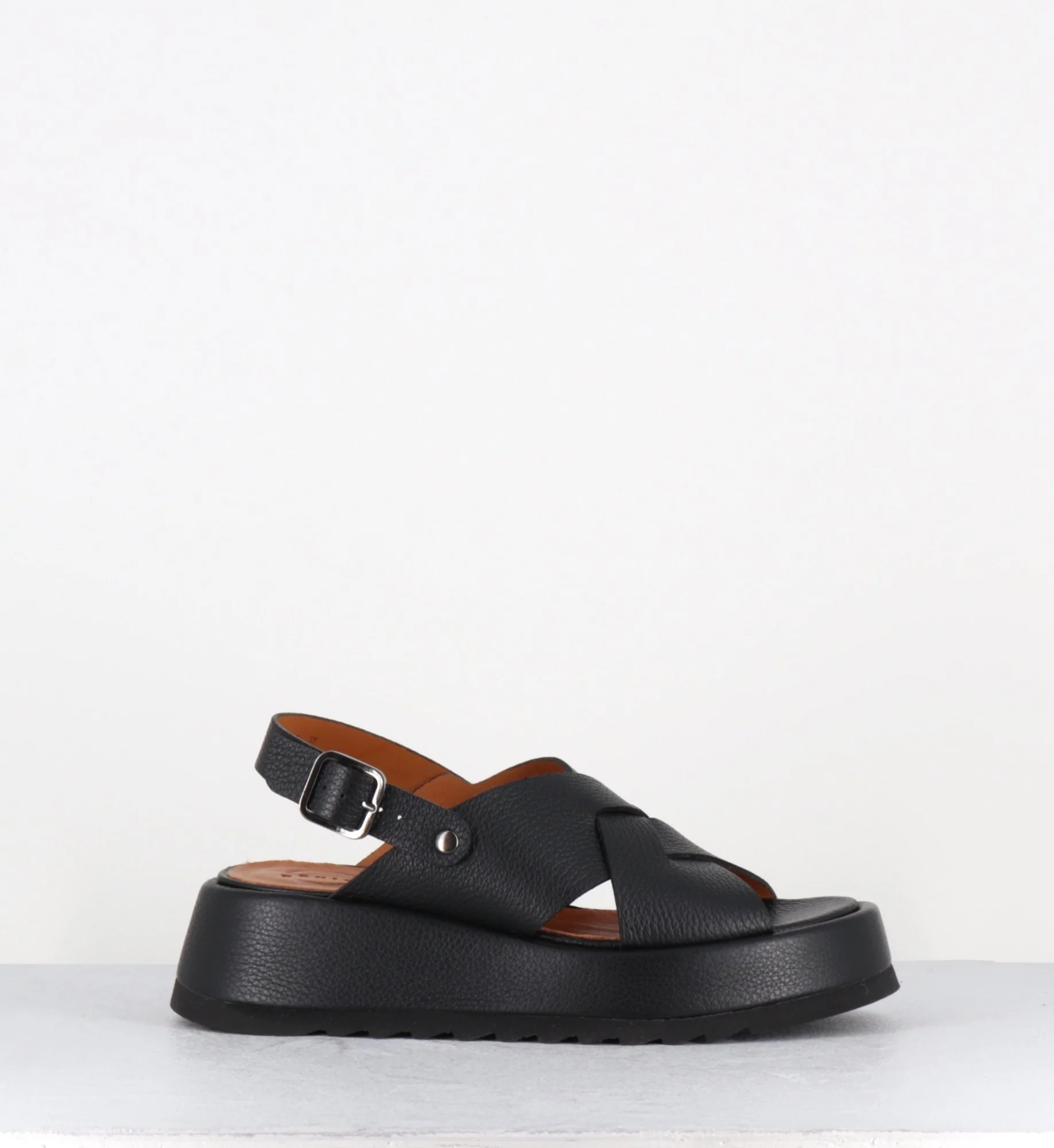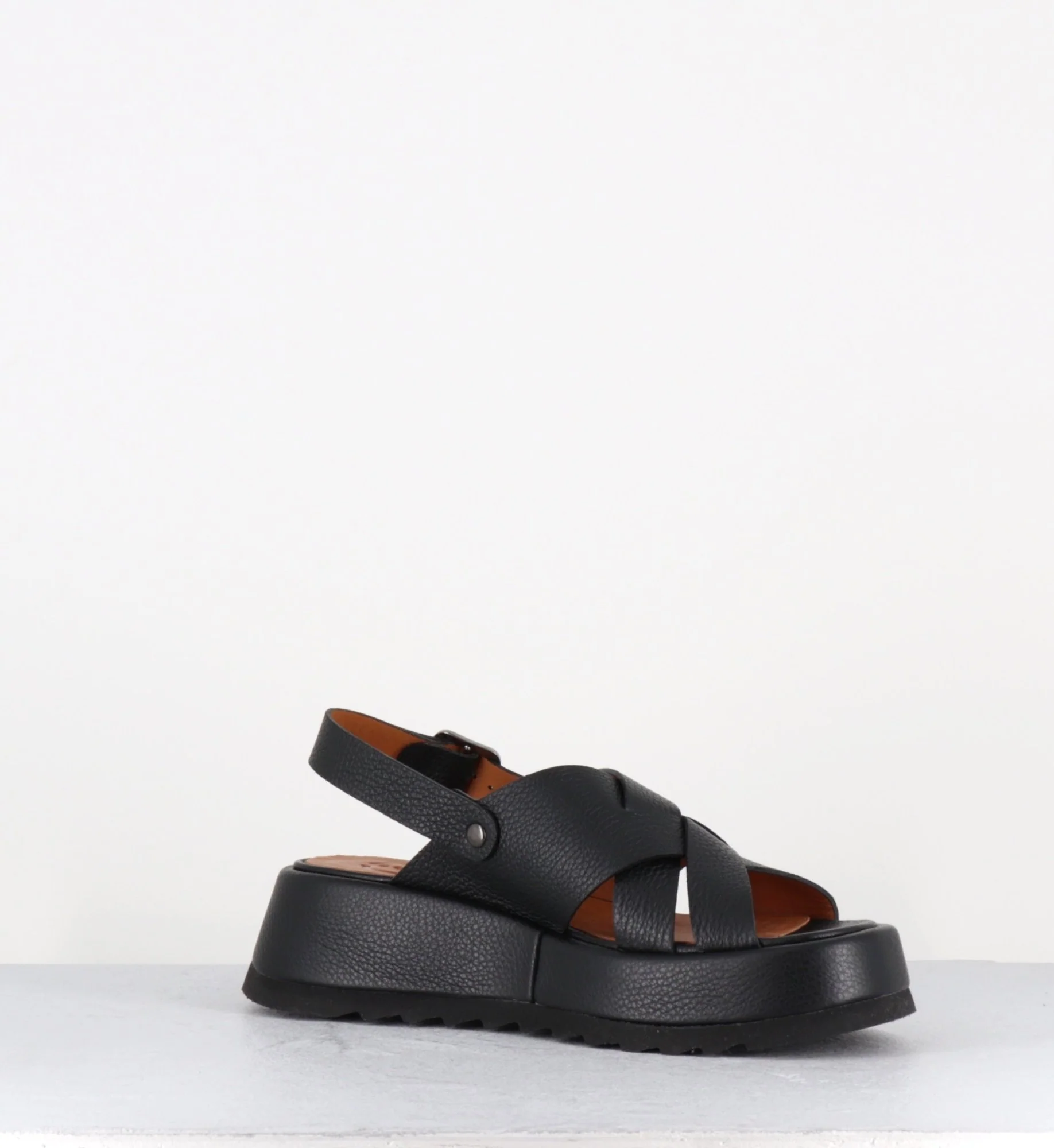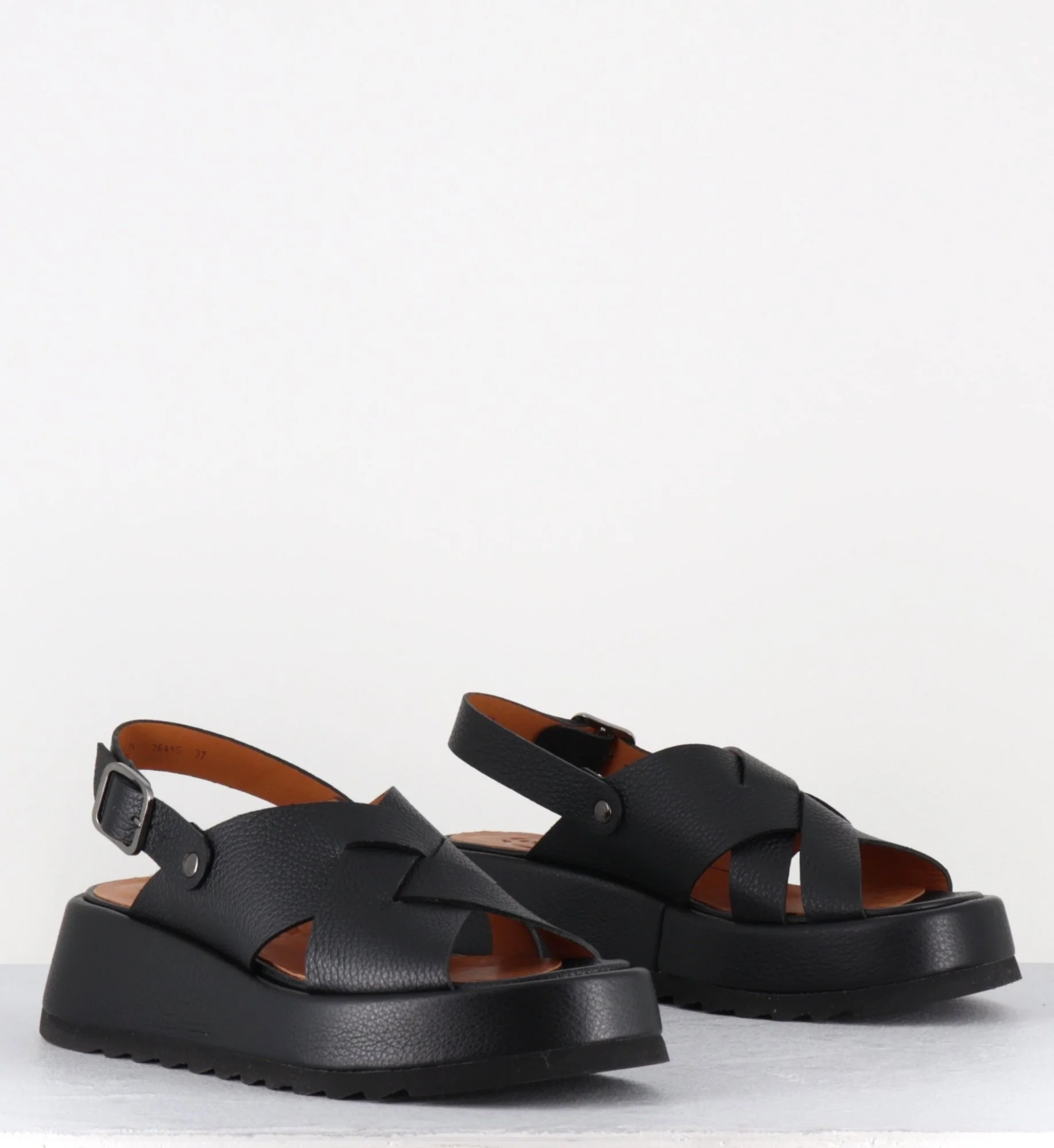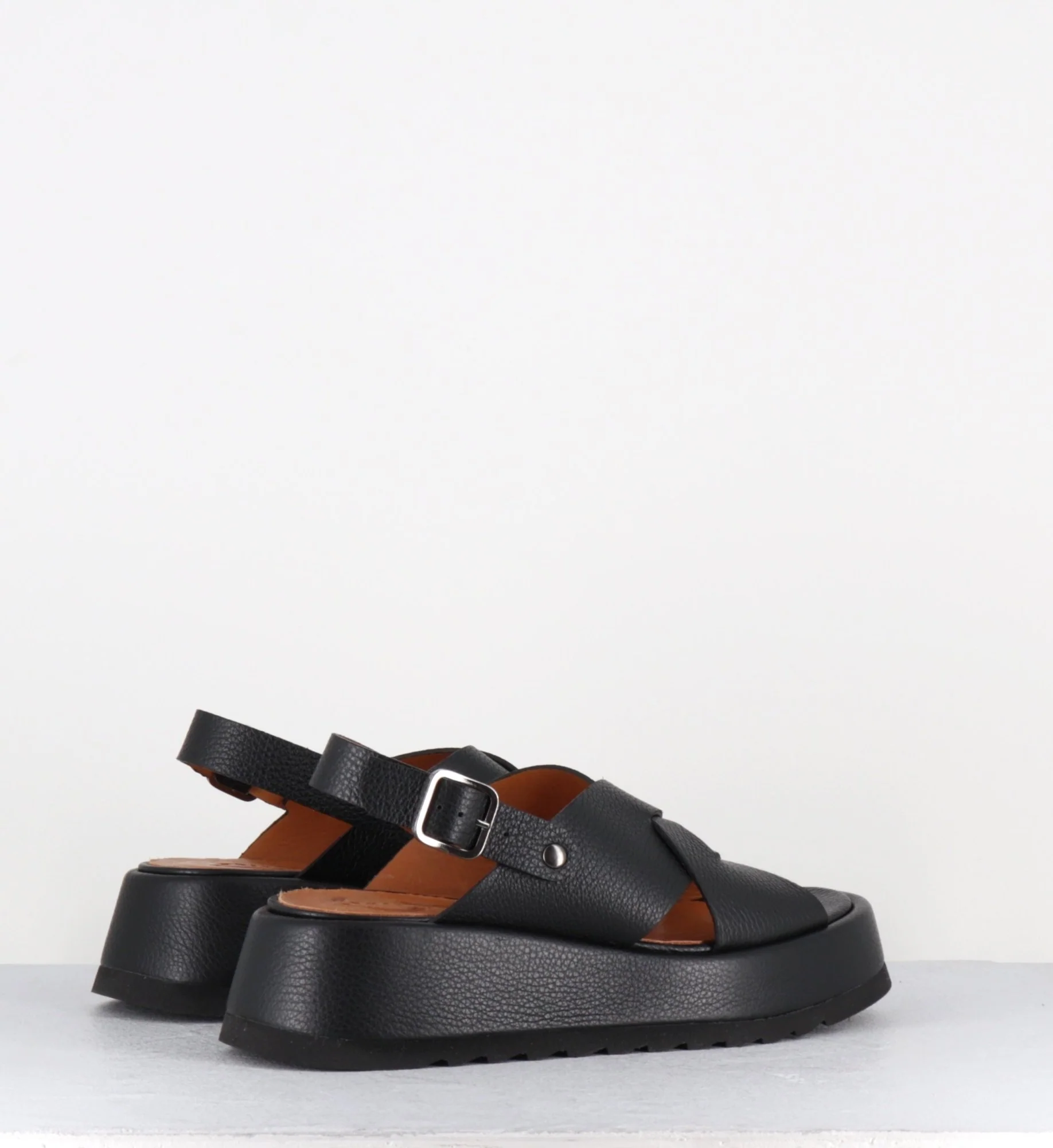 Sandales à plateforme en cuir grainé noir – IBIZA SANDONIS NEGRO