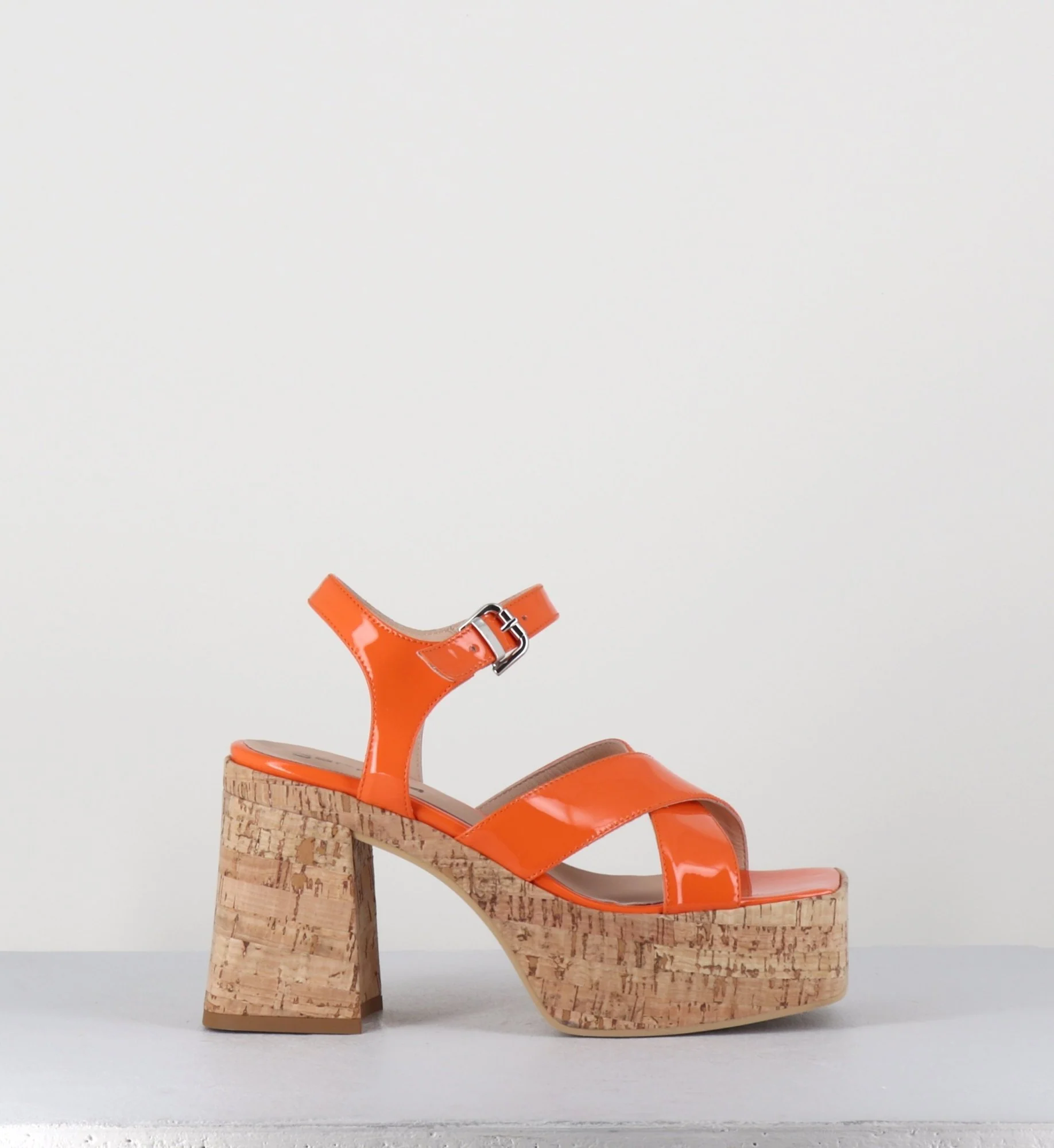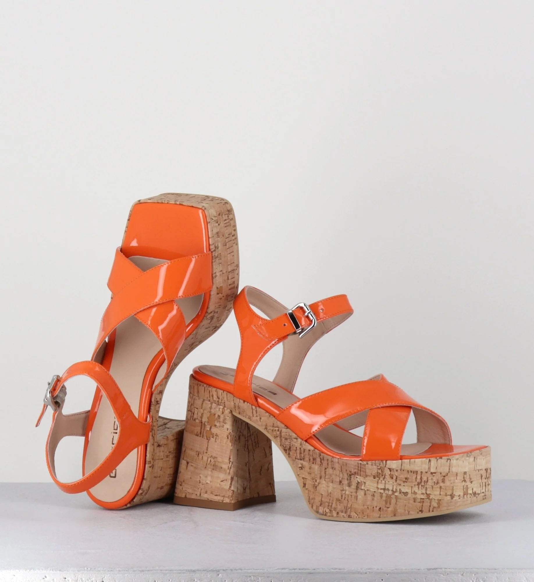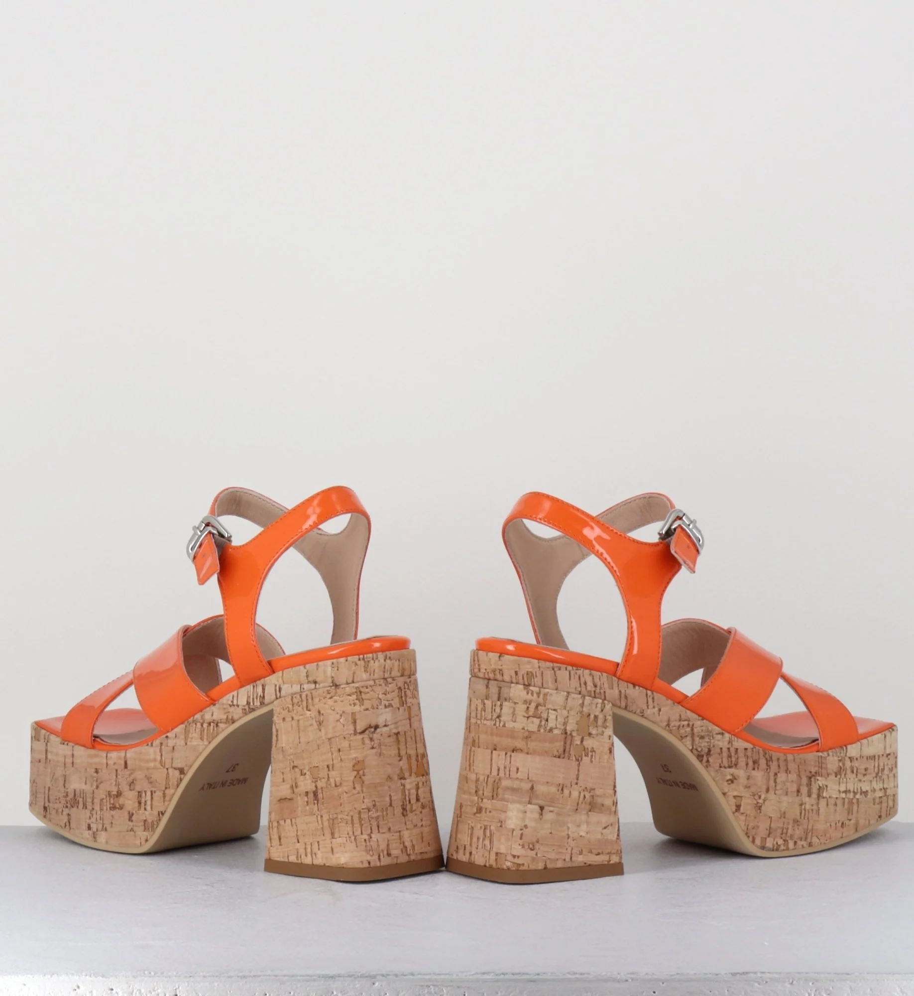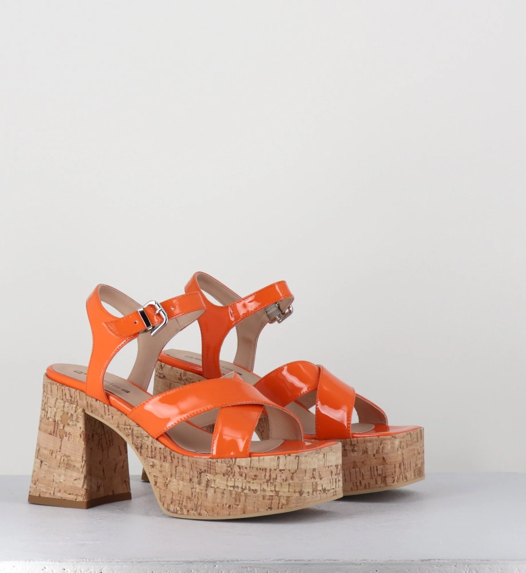Sandales à plateforme en liège vernis orange – AMERA ALBICOLA