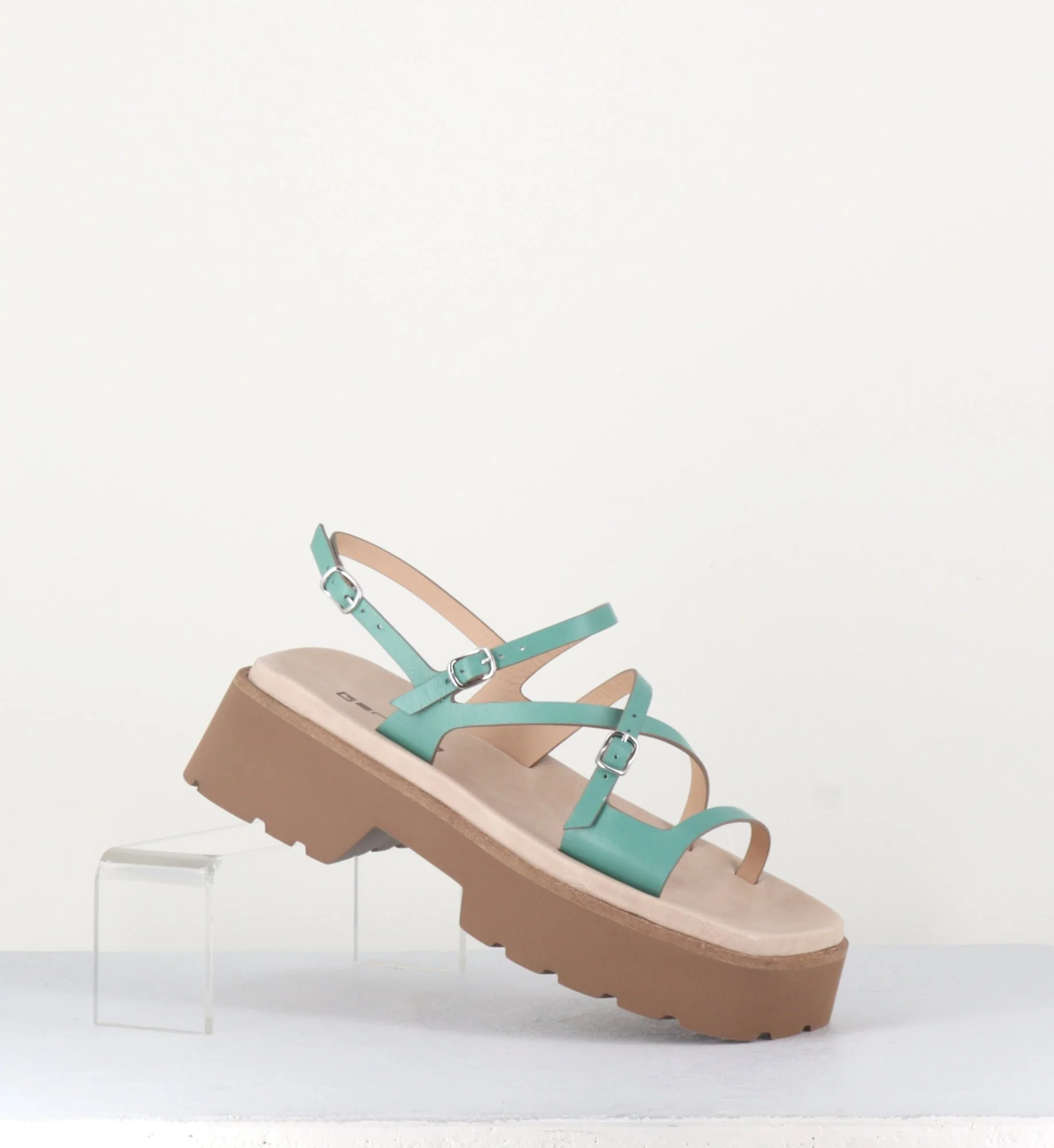 Sandales à plateforme légère en cuir vert d’eau – PE7423 VERDE