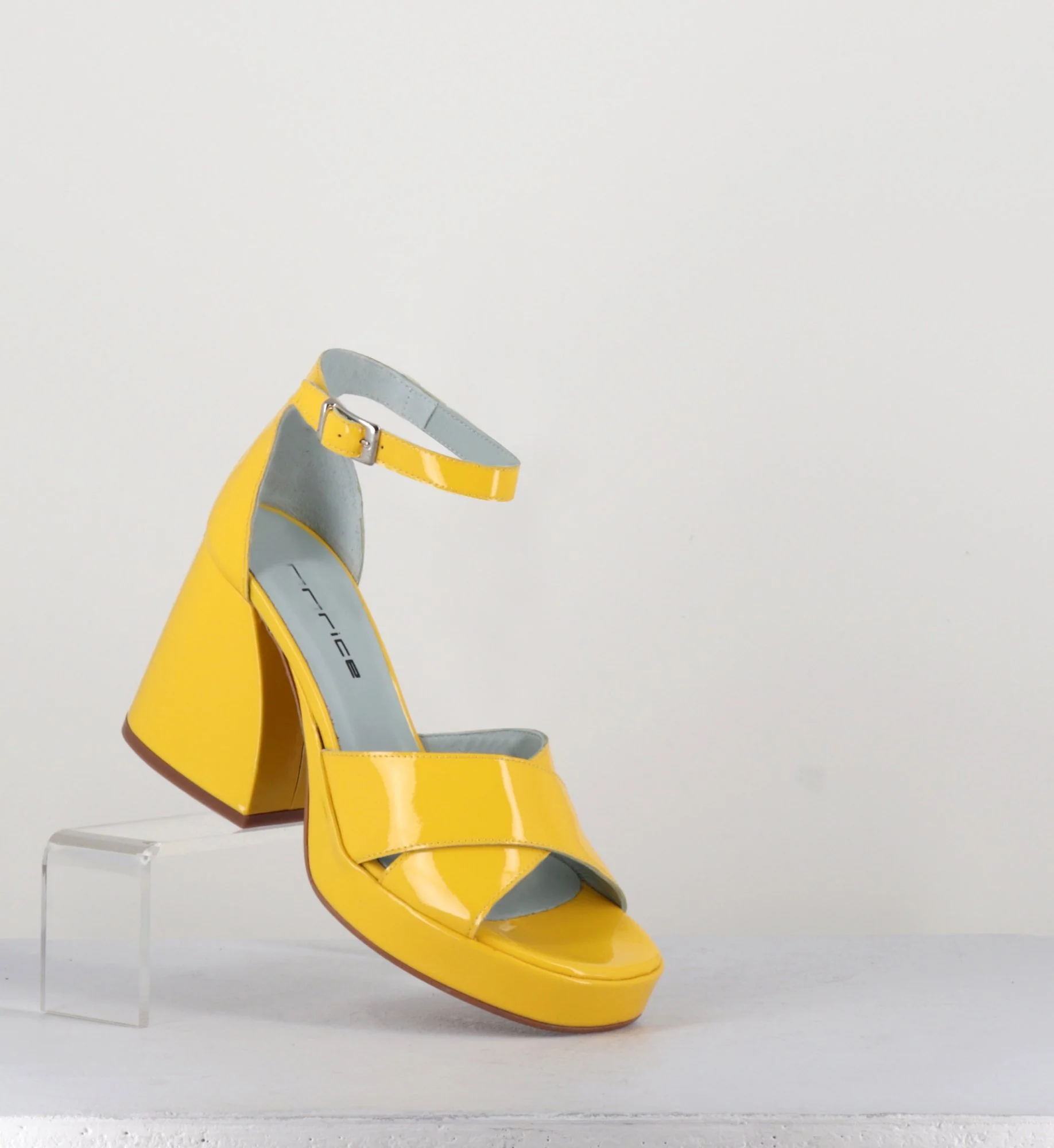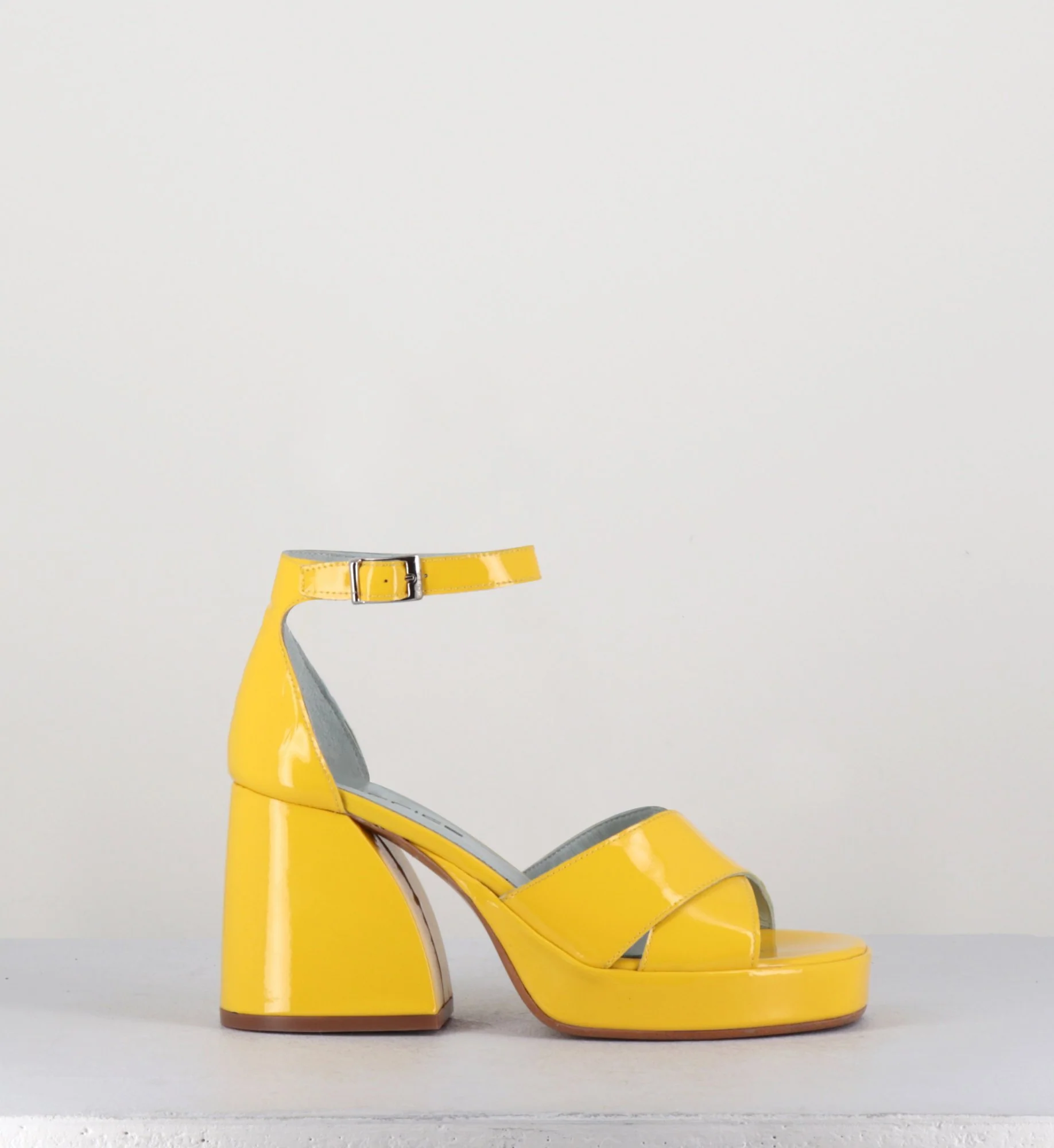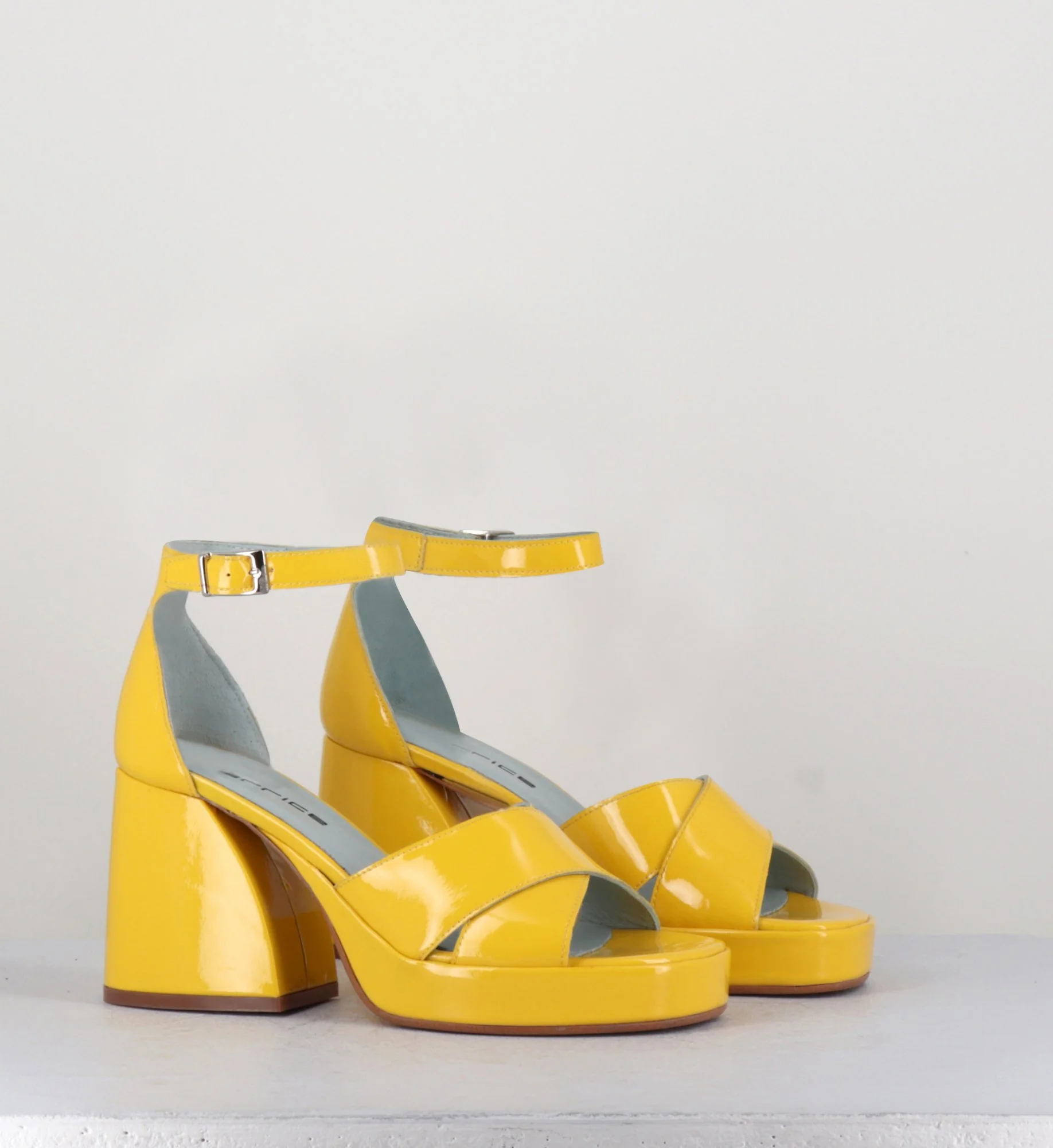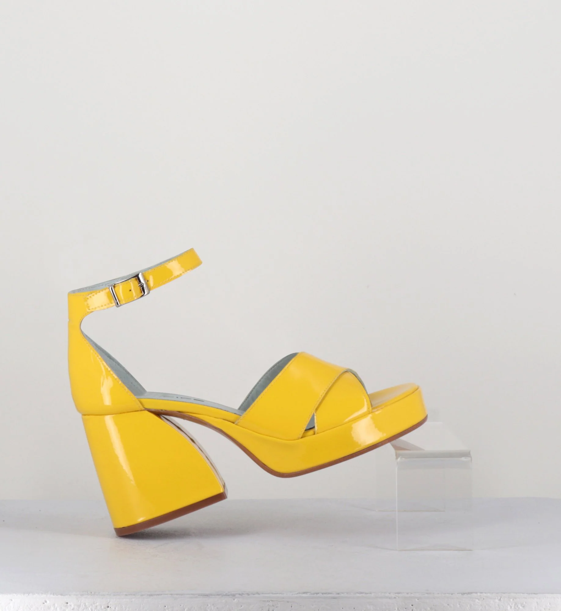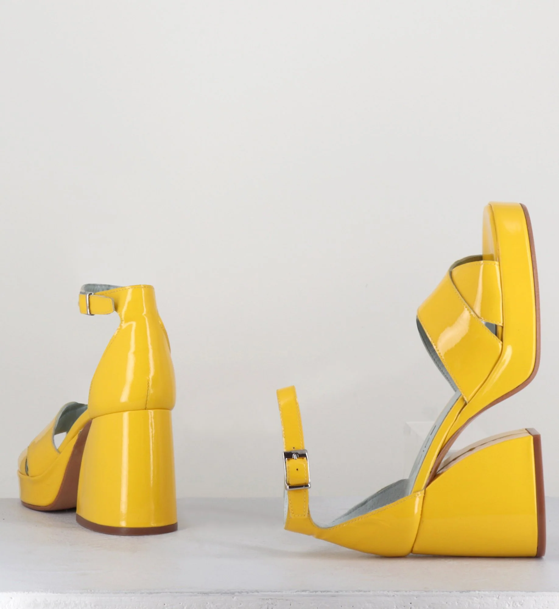 Sandales à plateformes en cuir vernis jaune – CLAUDIA SUN