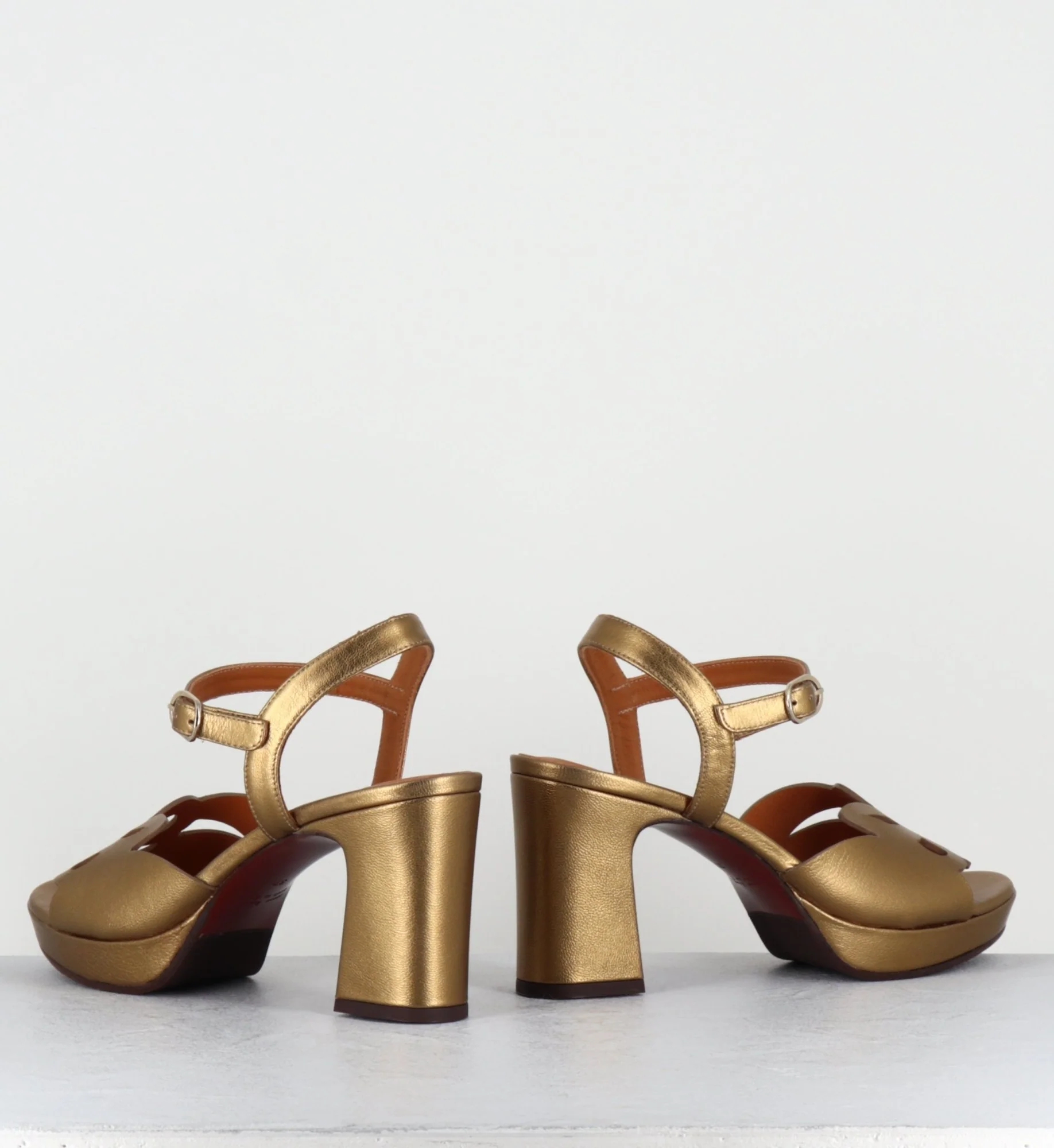 Sandales à talon en cuir métallisé bronze – KEMADA DALI BRONCE