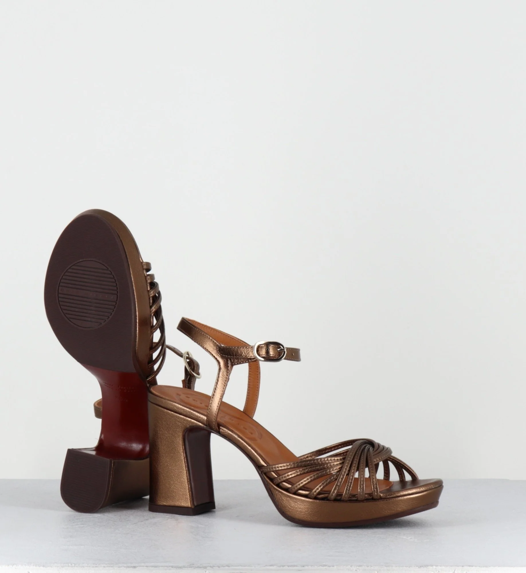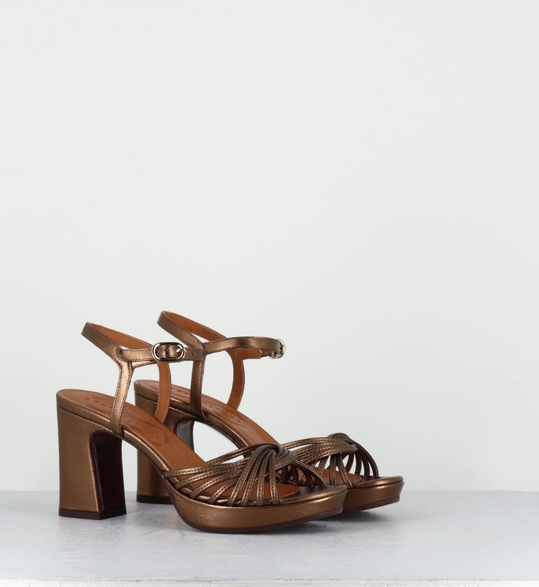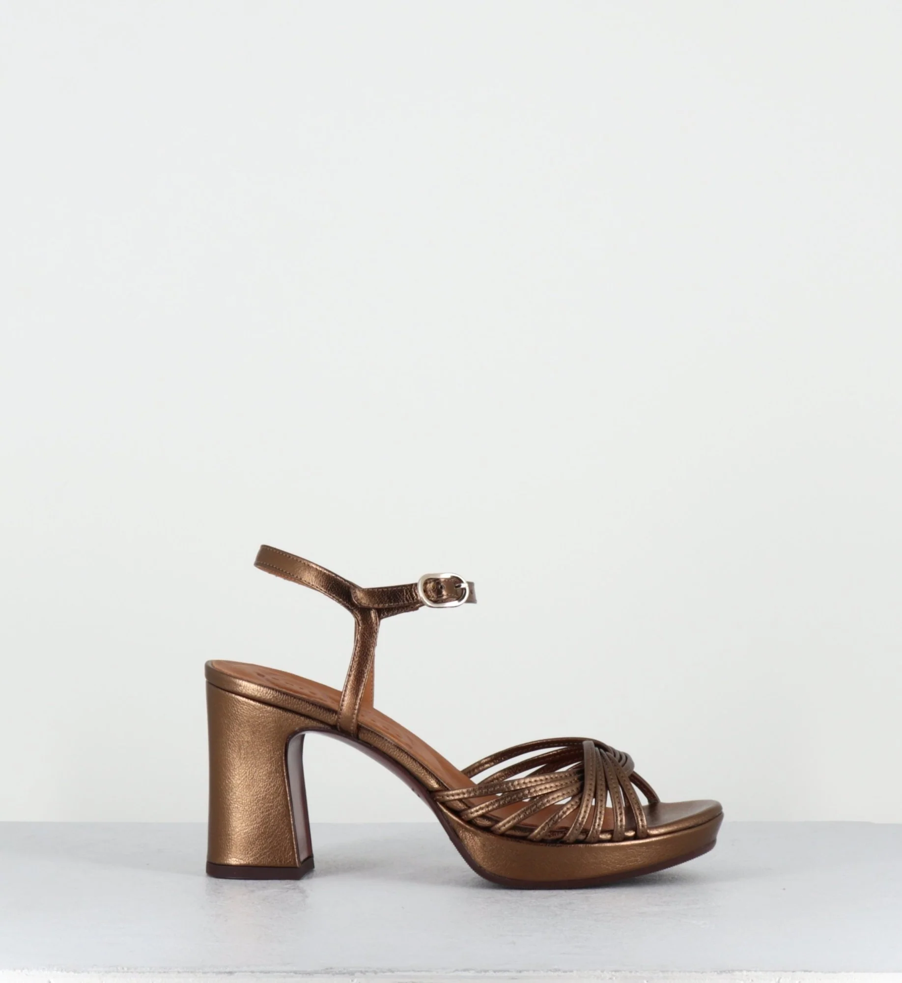 Sandales à talon multi-brides en cuir métallisé bronze – KESKE DALI COBRE