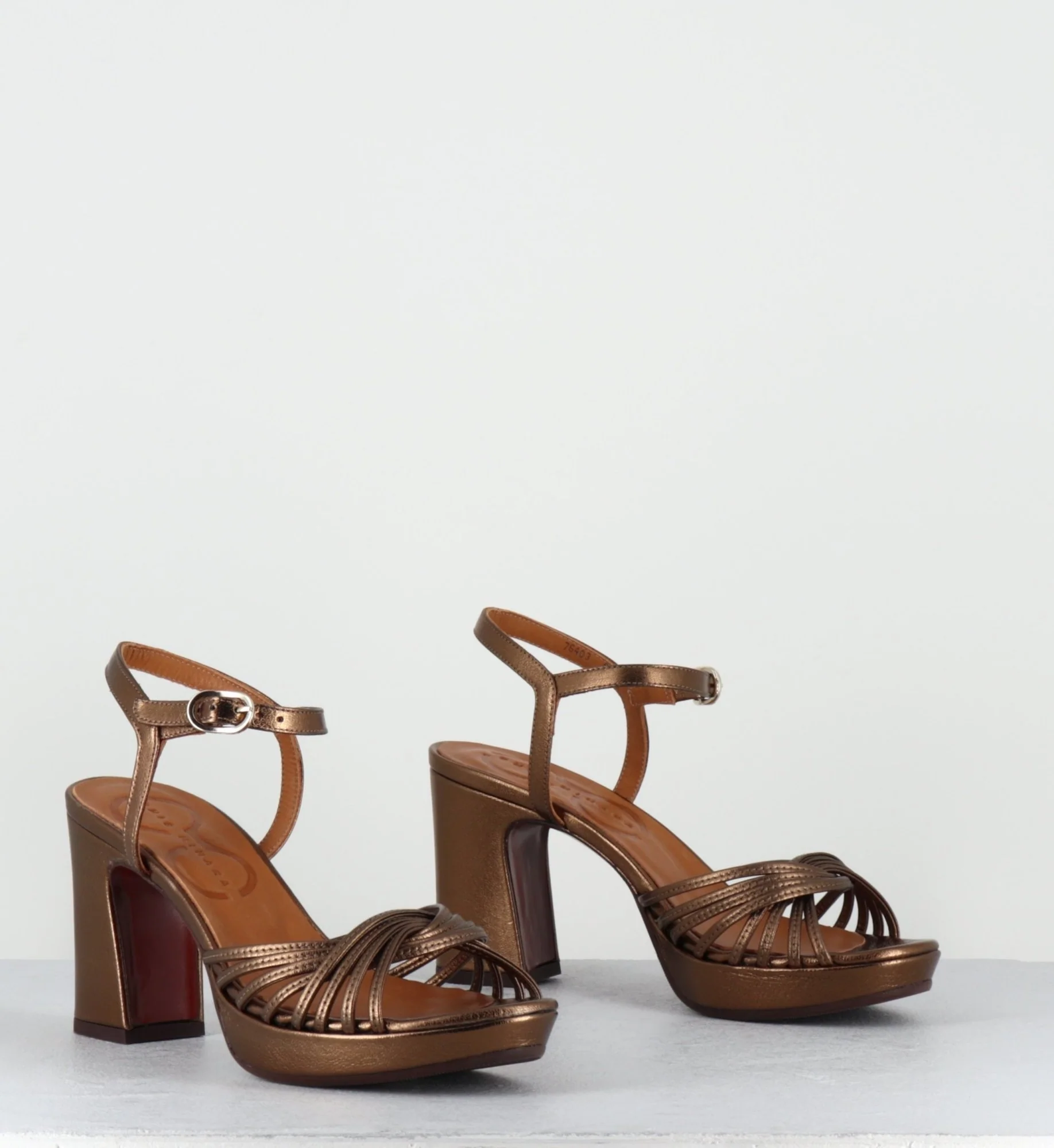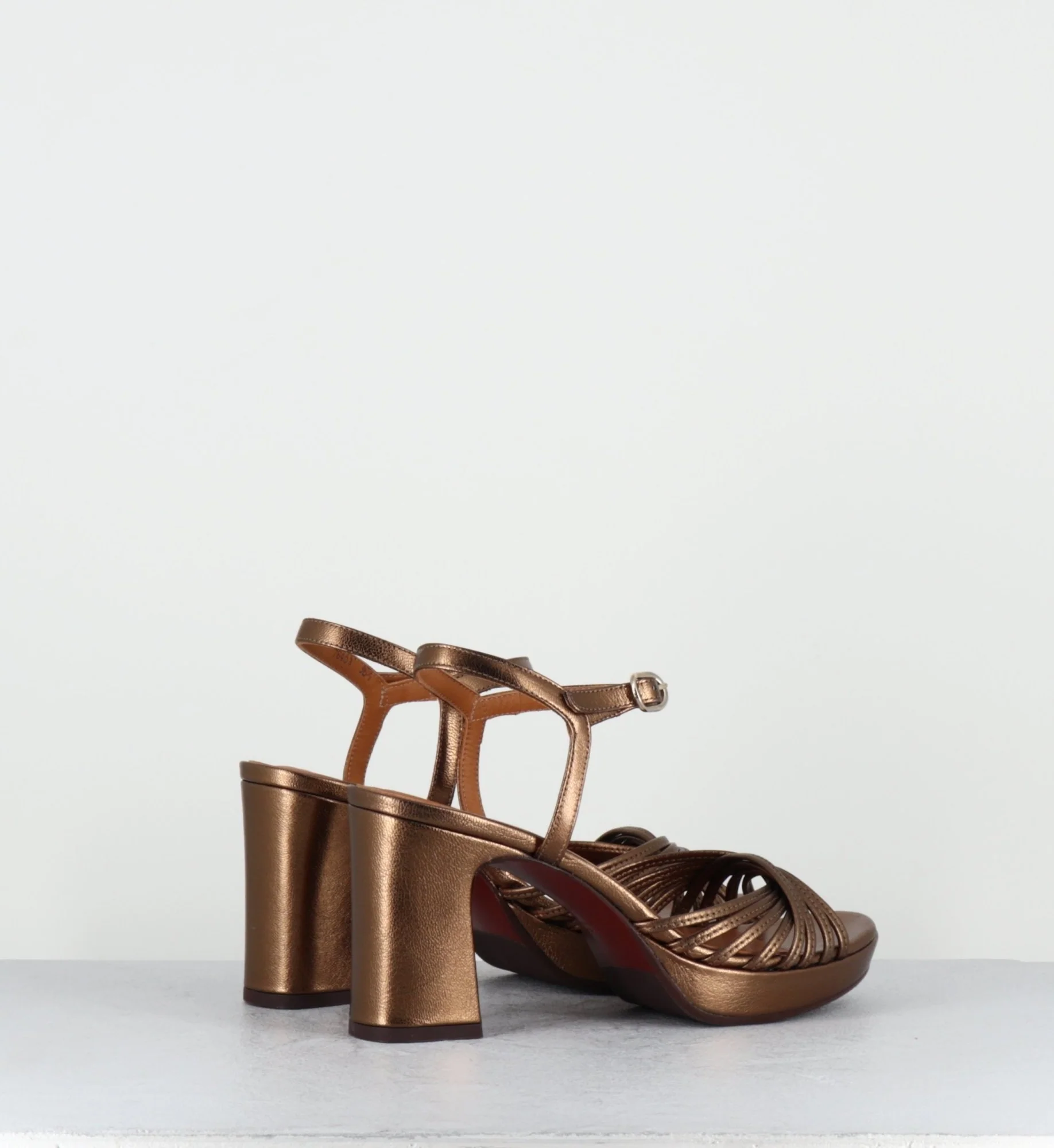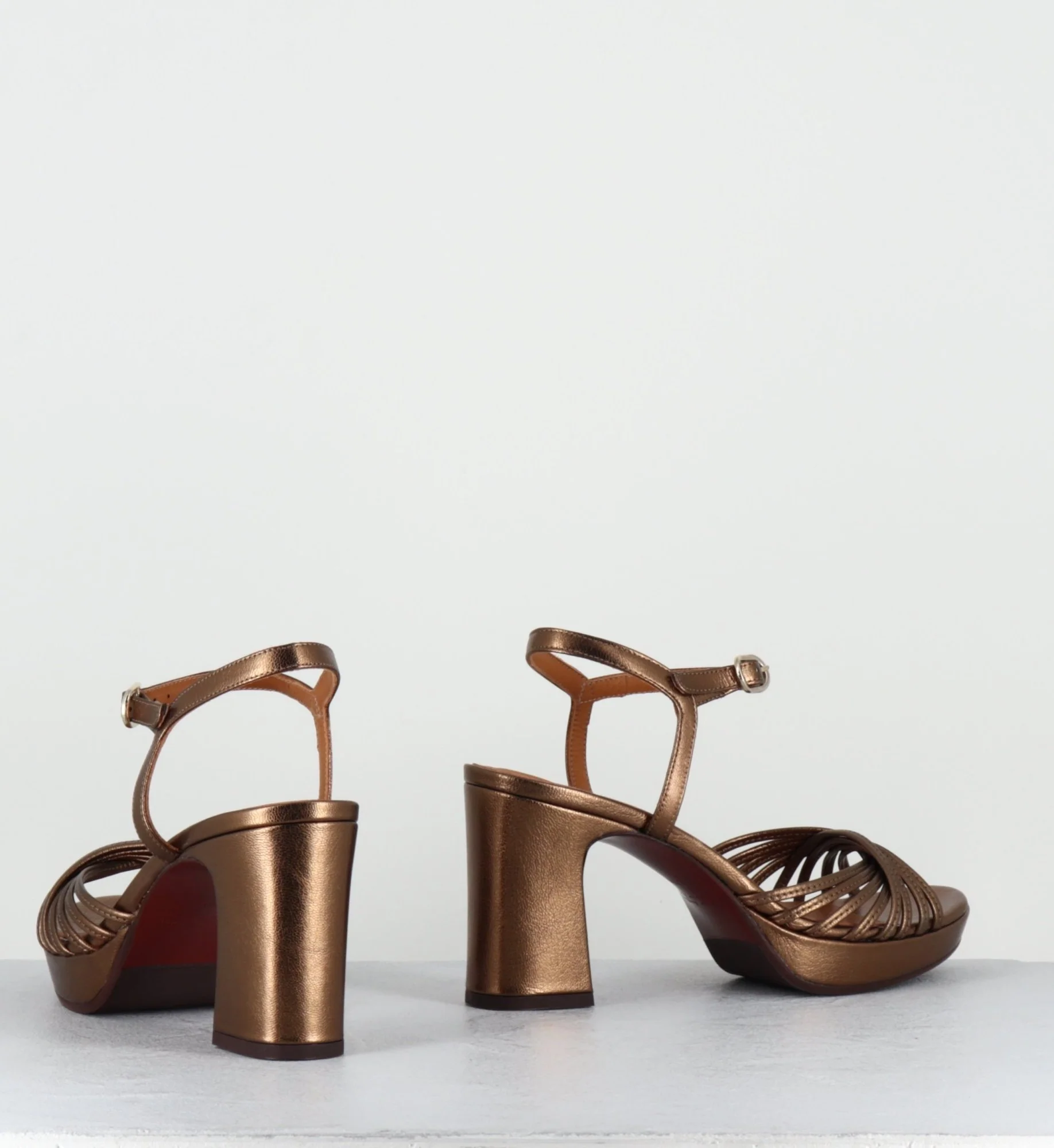 Sandales à talon multi-brides en cuir métallisé bronze – KESKE DALI COBRE