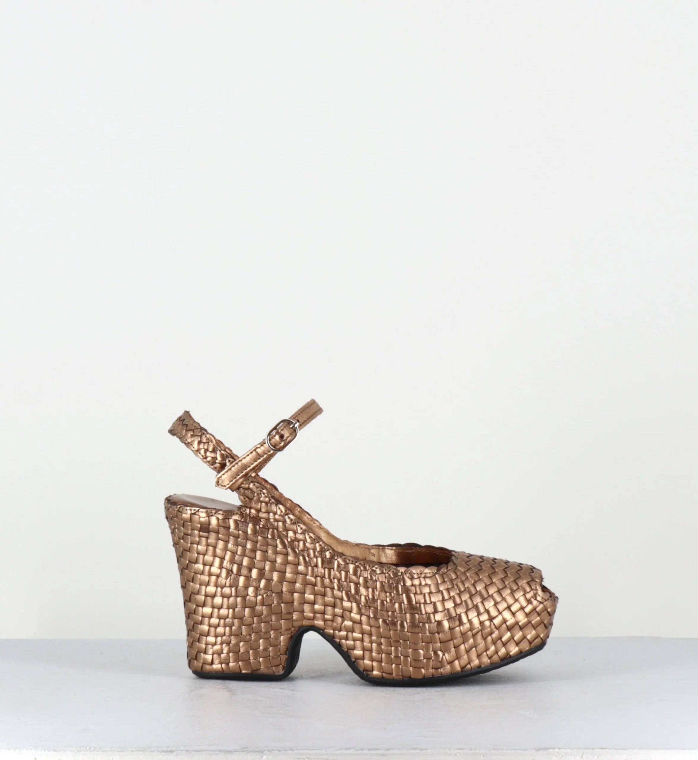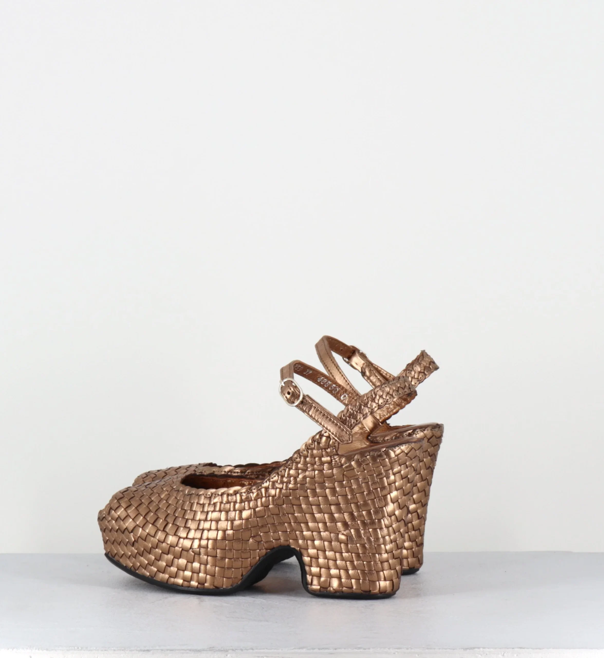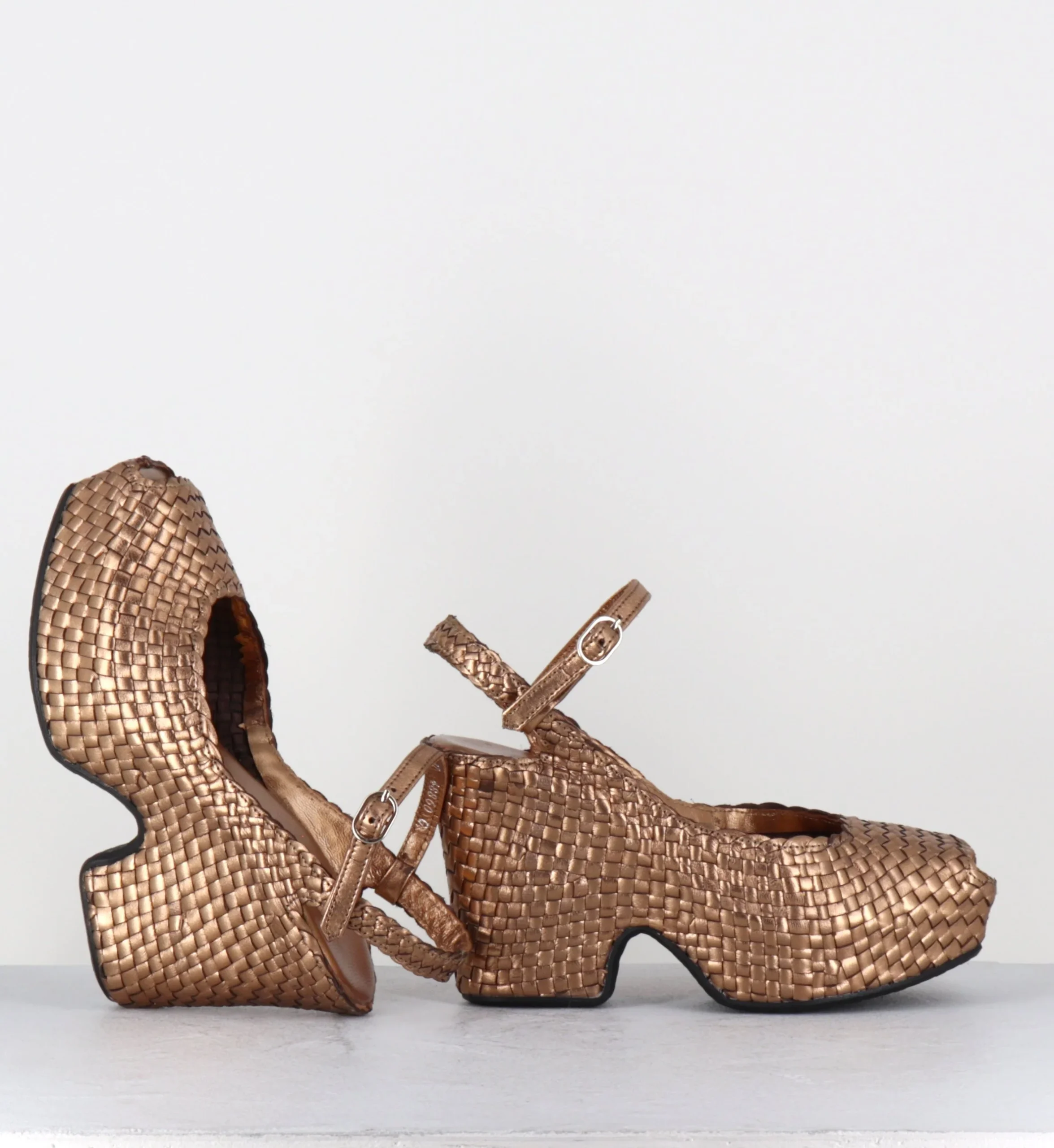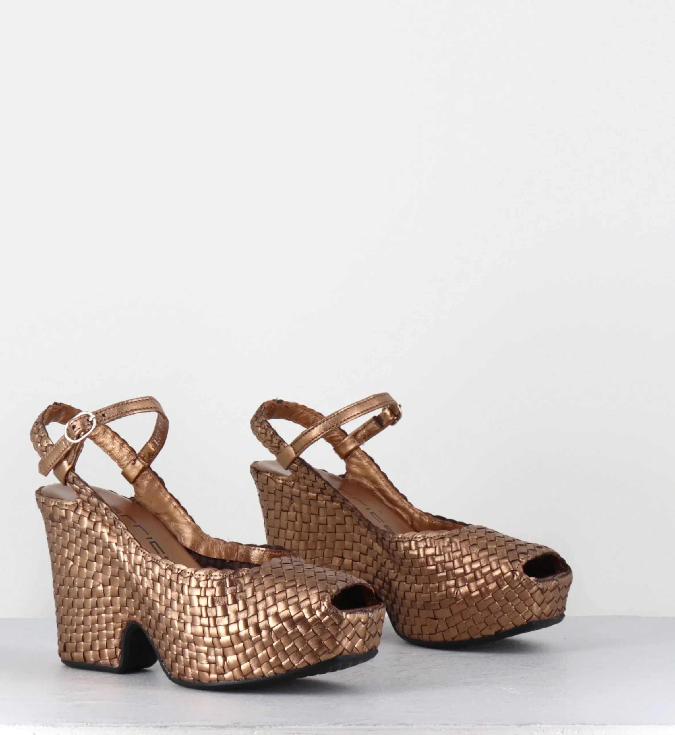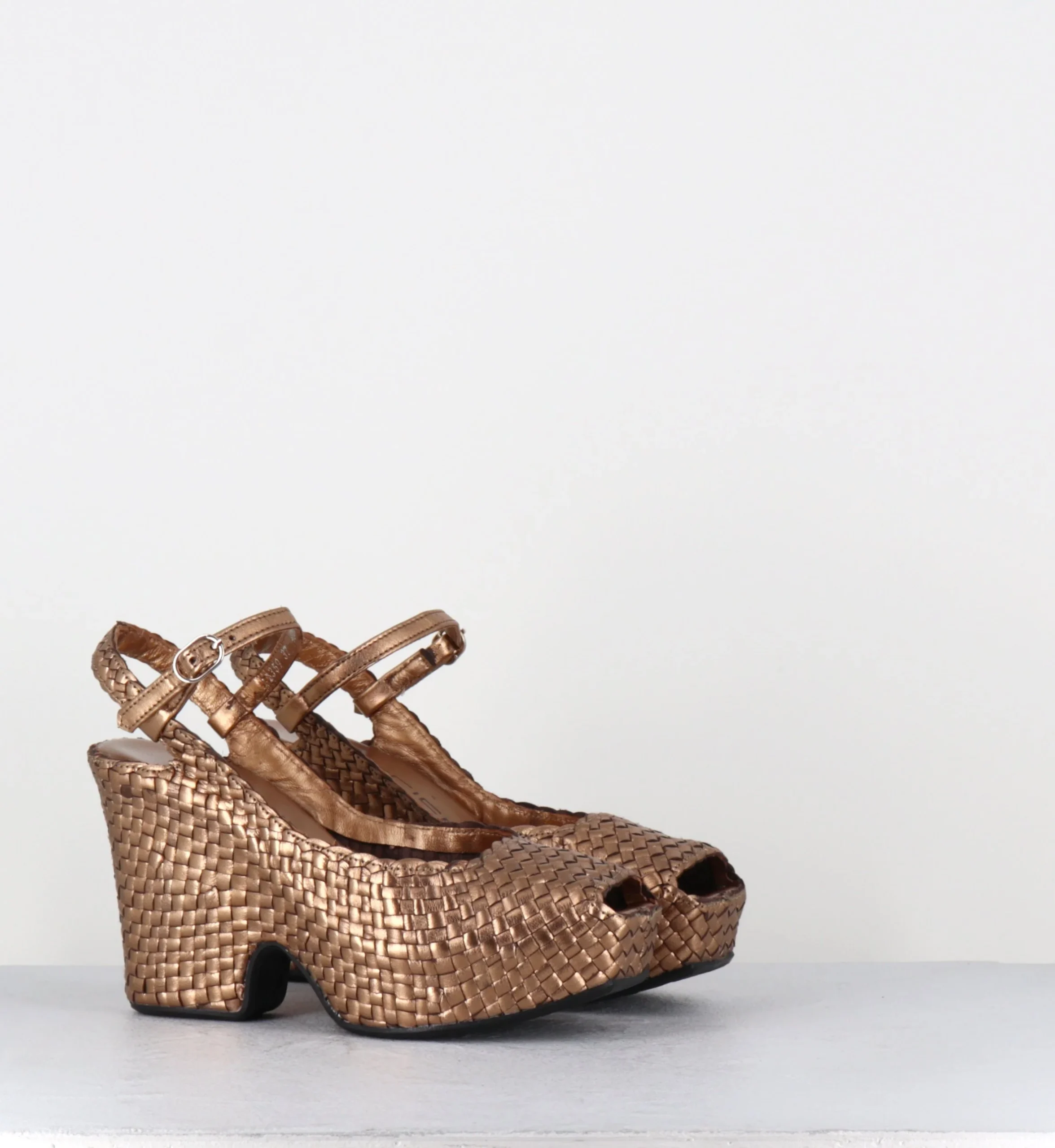 Sandales compensées en cuir tressé bronze bout carré – SANREY OASSI TRENZADO