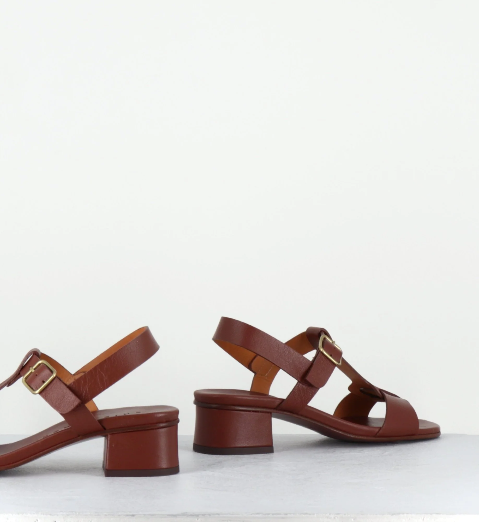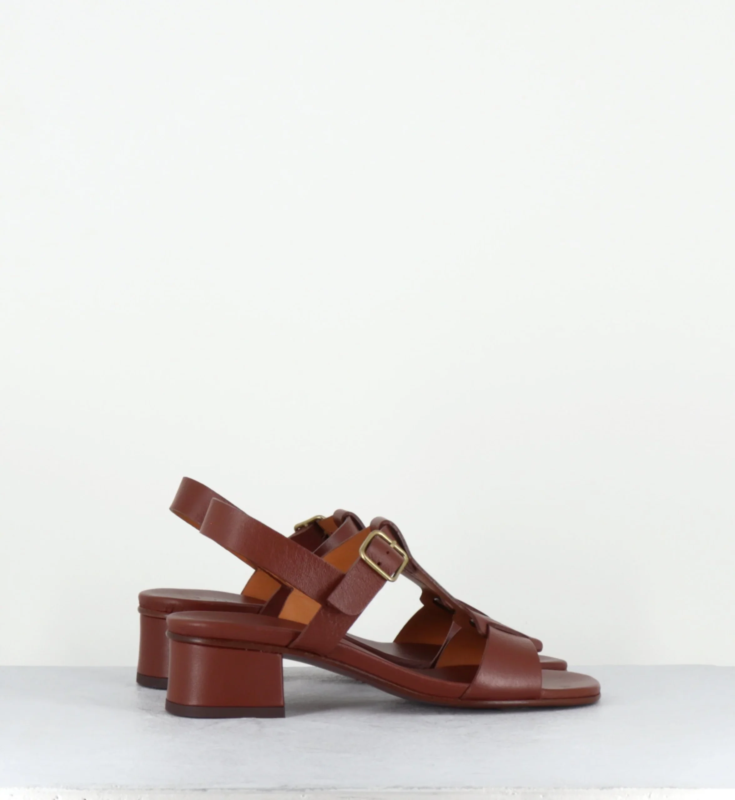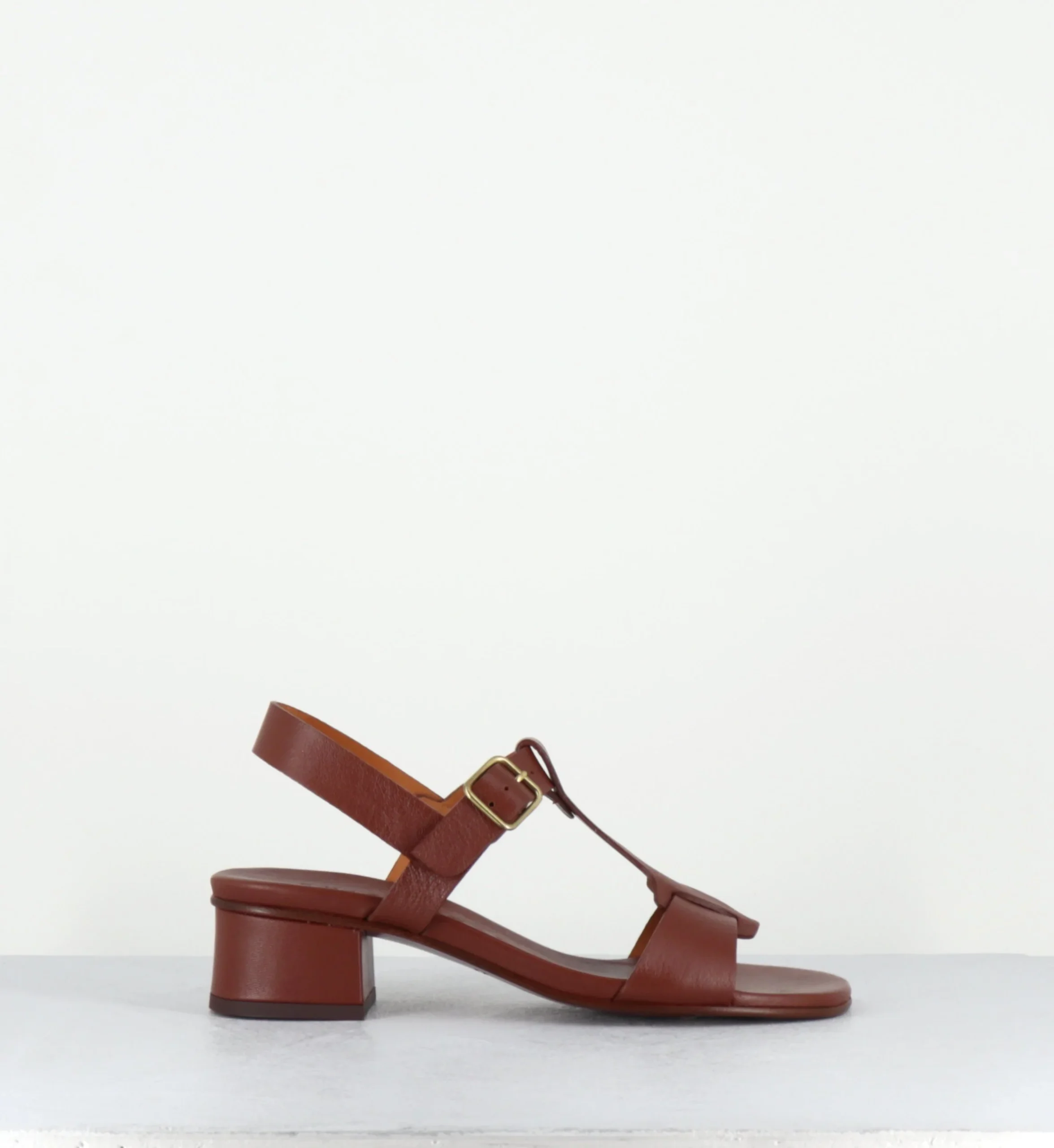 Sandales en cuir marron petit talon – QUACO44 PIEL NAPA