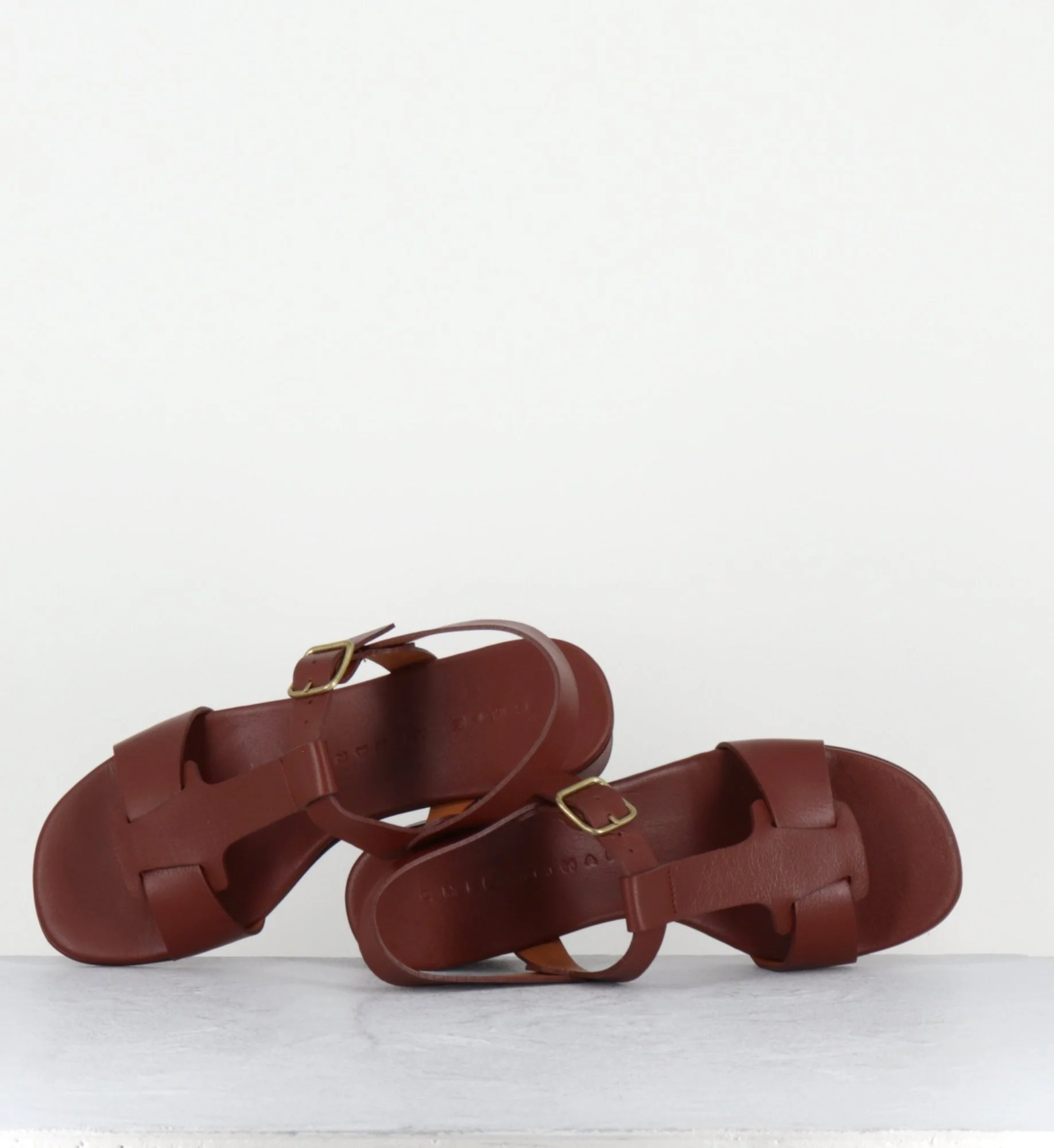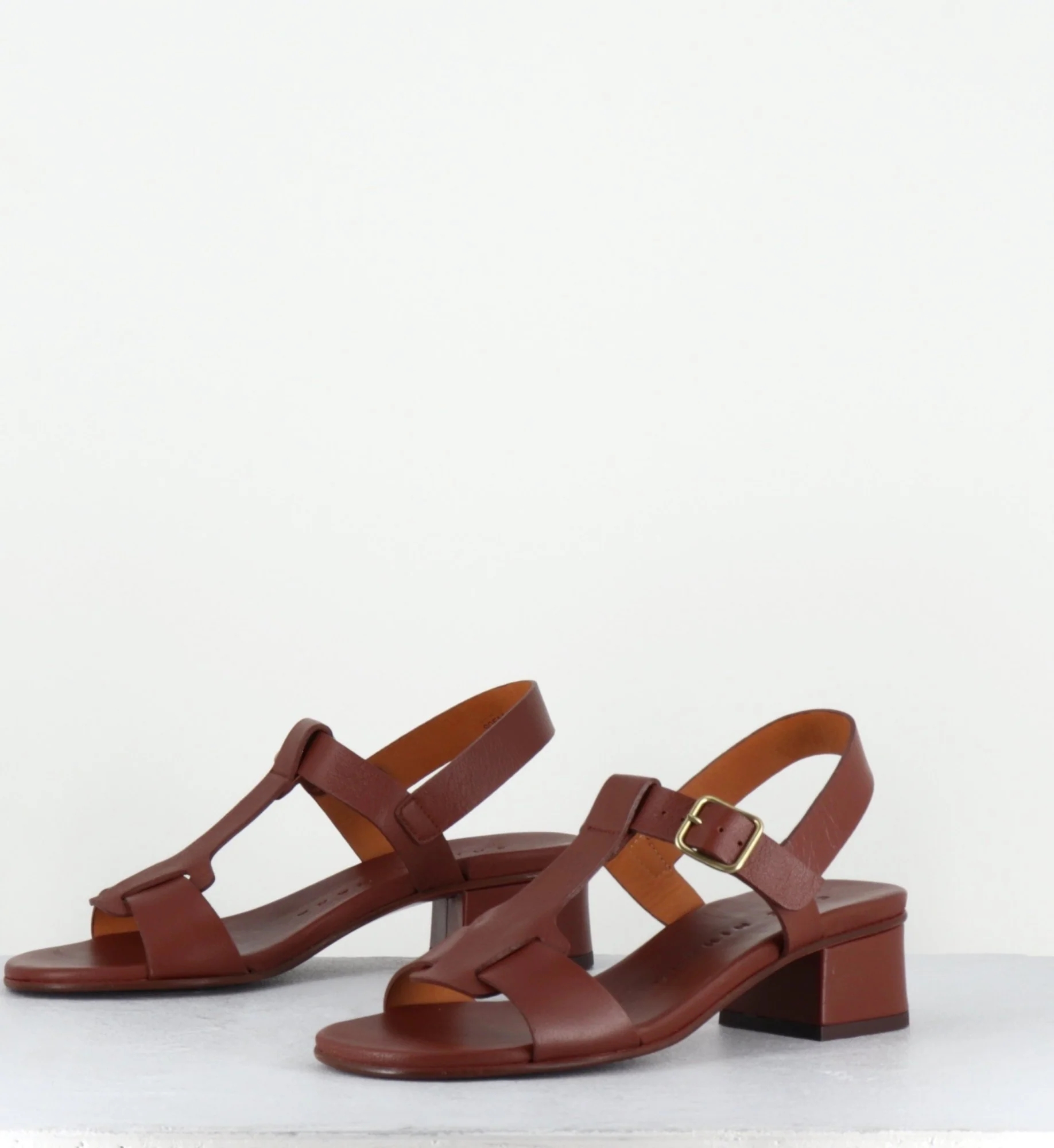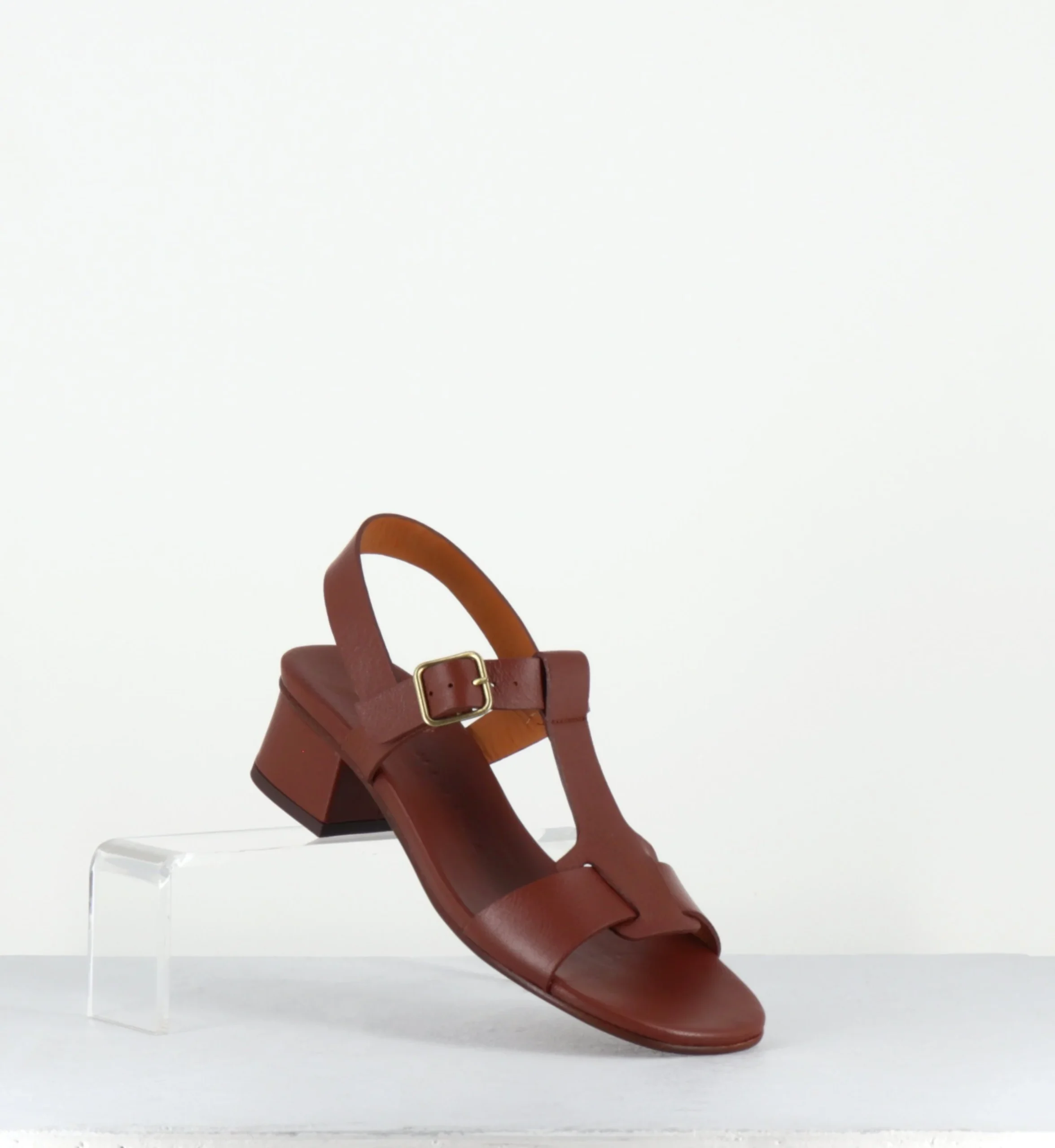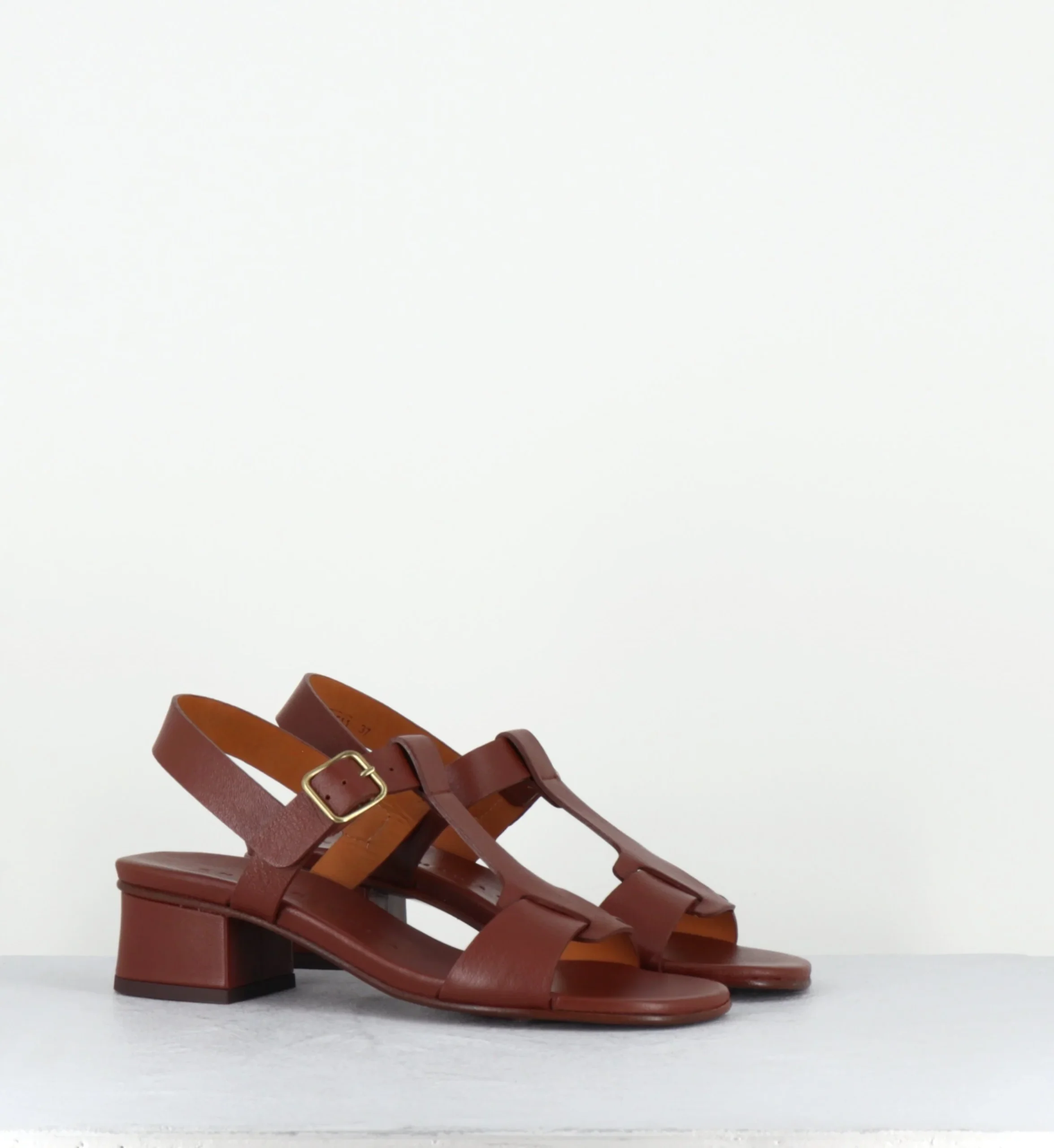 Sandales en cuir marron petit talon – QUACO44 PIEL NAPA