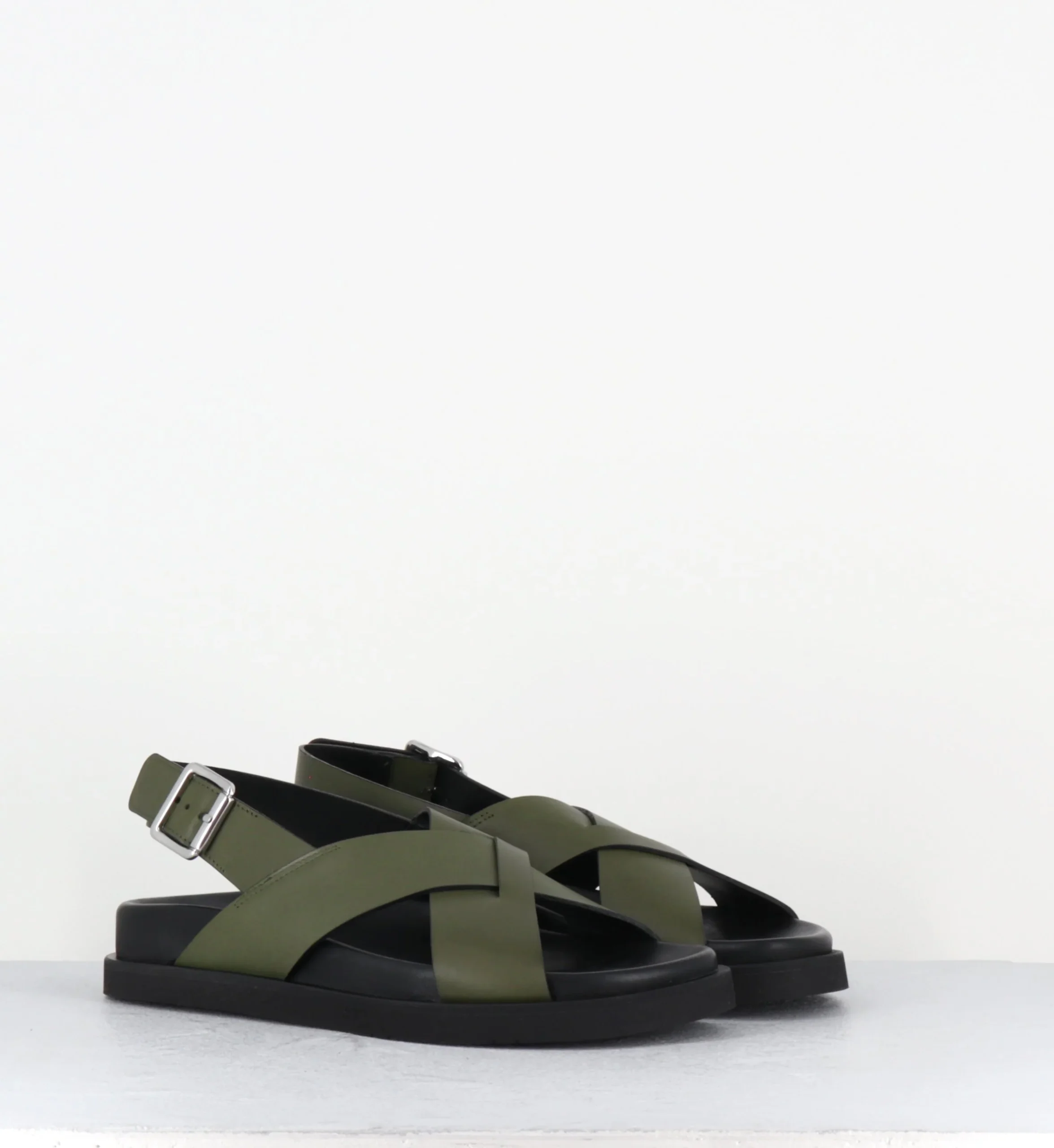 Sandales en cuir vert kaki semelle anatomique légère – THALIAS RANCH KHAKI
