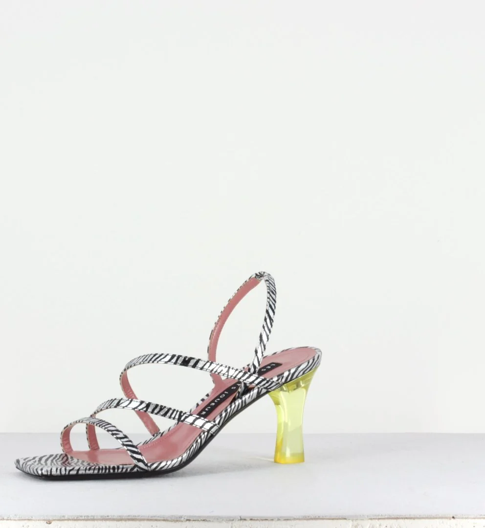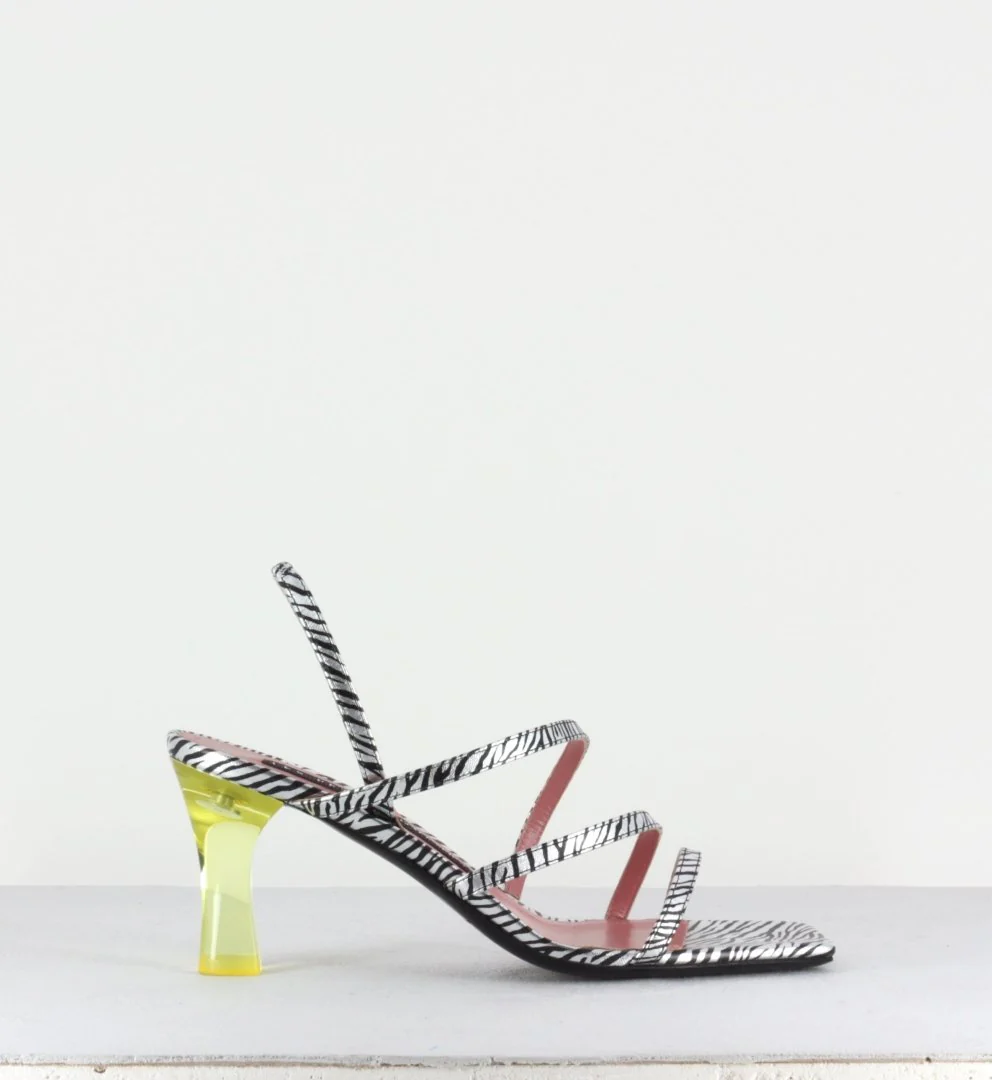 Sandales imprimé zèbre talon pléxi – Kiri Plexy