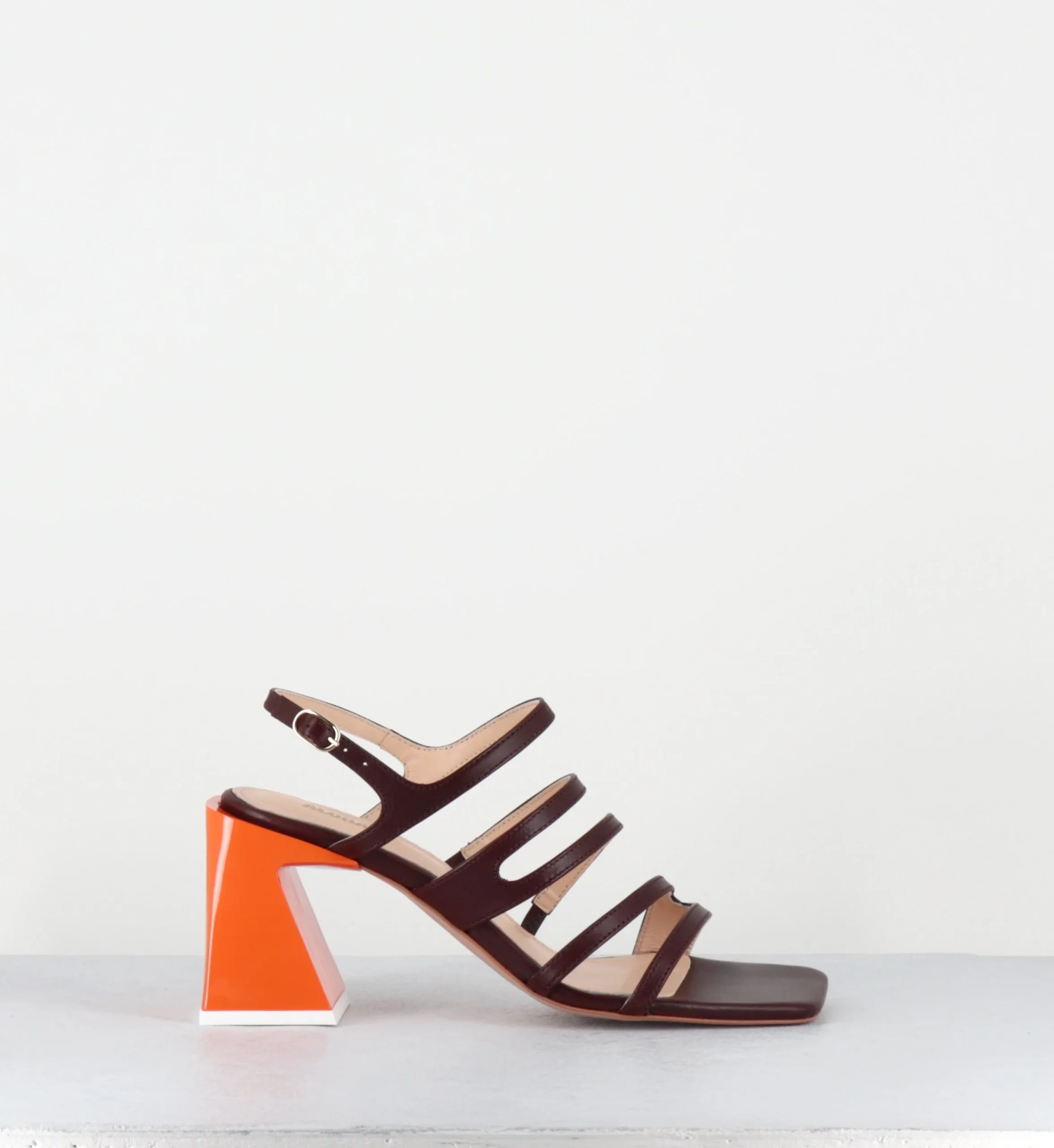 Sandales multi-bride en cuir marron & talon plexi orange – AUBREY BROWN SANDALS
