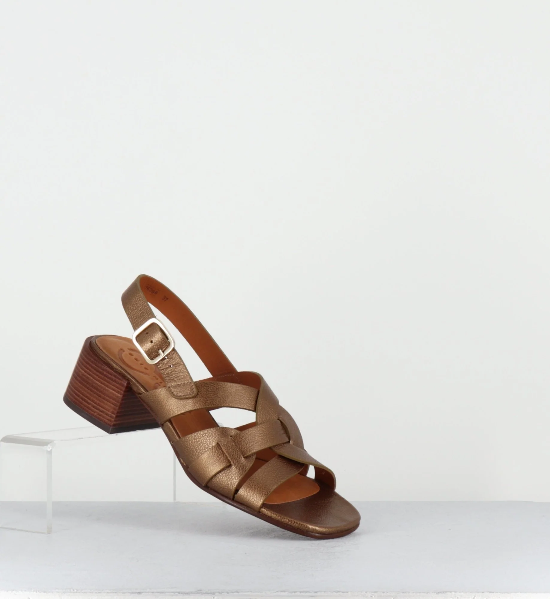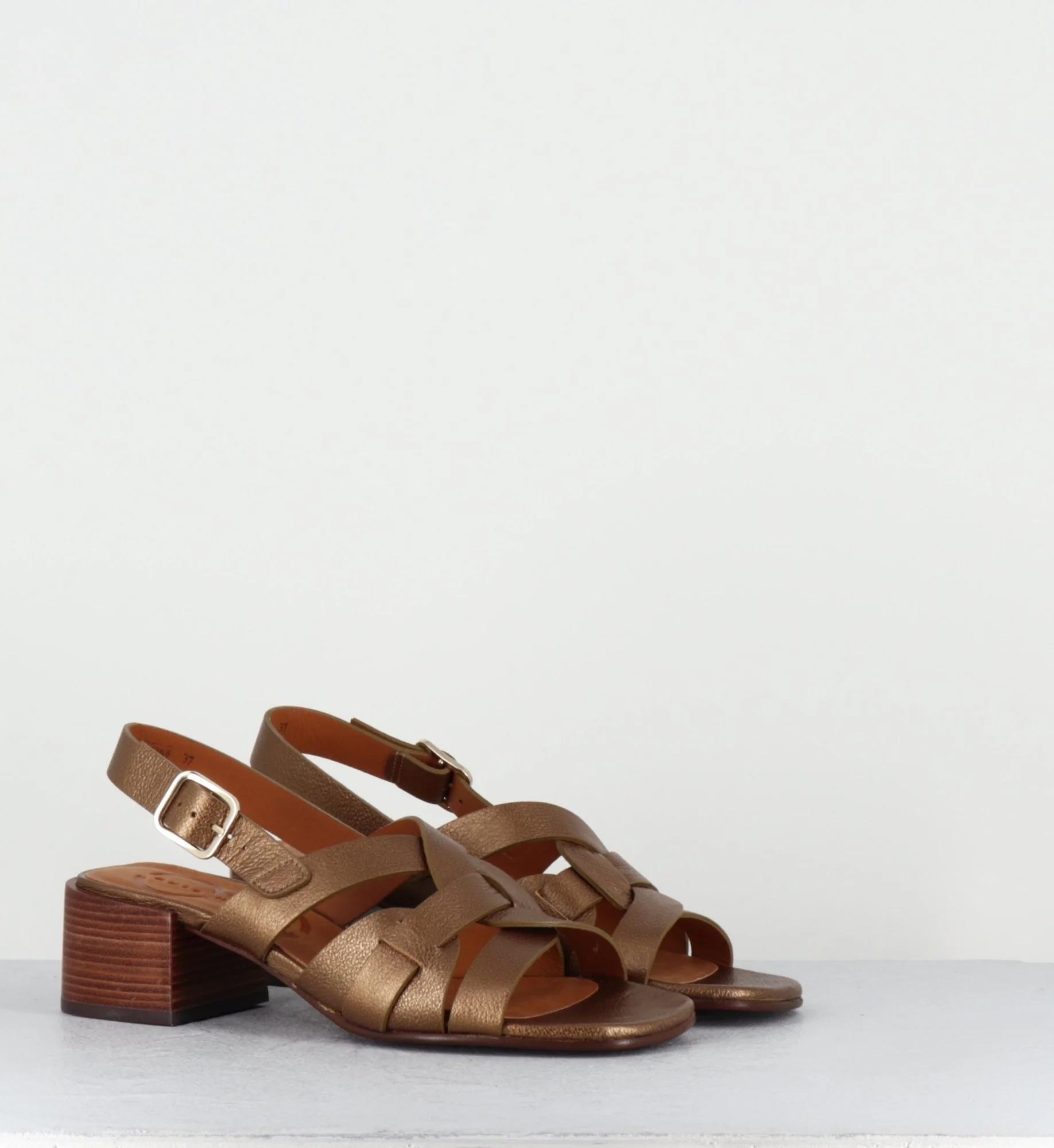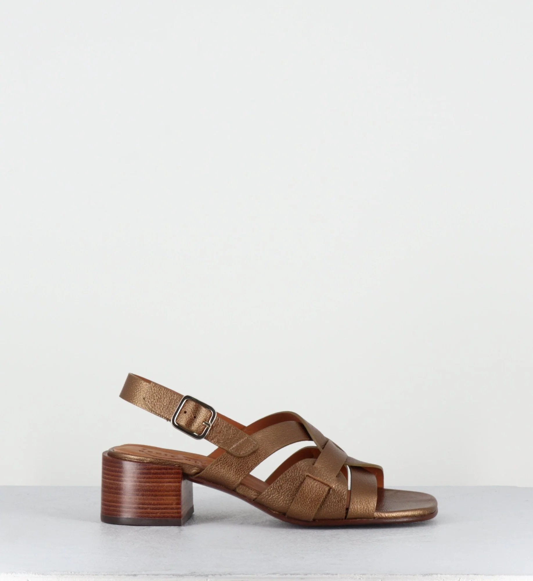 Sandales petit talon en cuir métallisé bronze – QUORI KASHU BRONCE