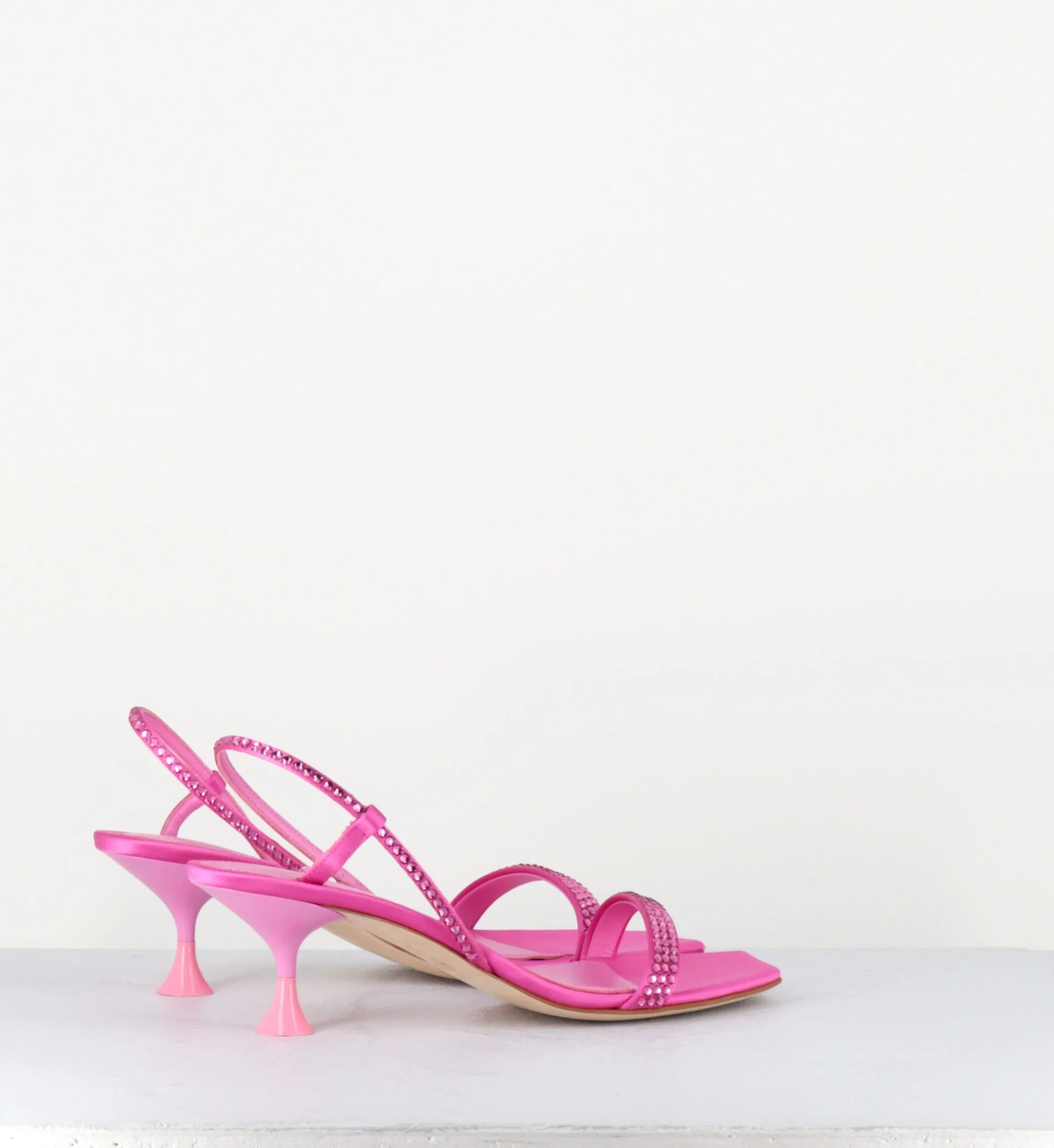 Sandales petit talon satin fuchsia & strass – TAMI SATIN CANDY