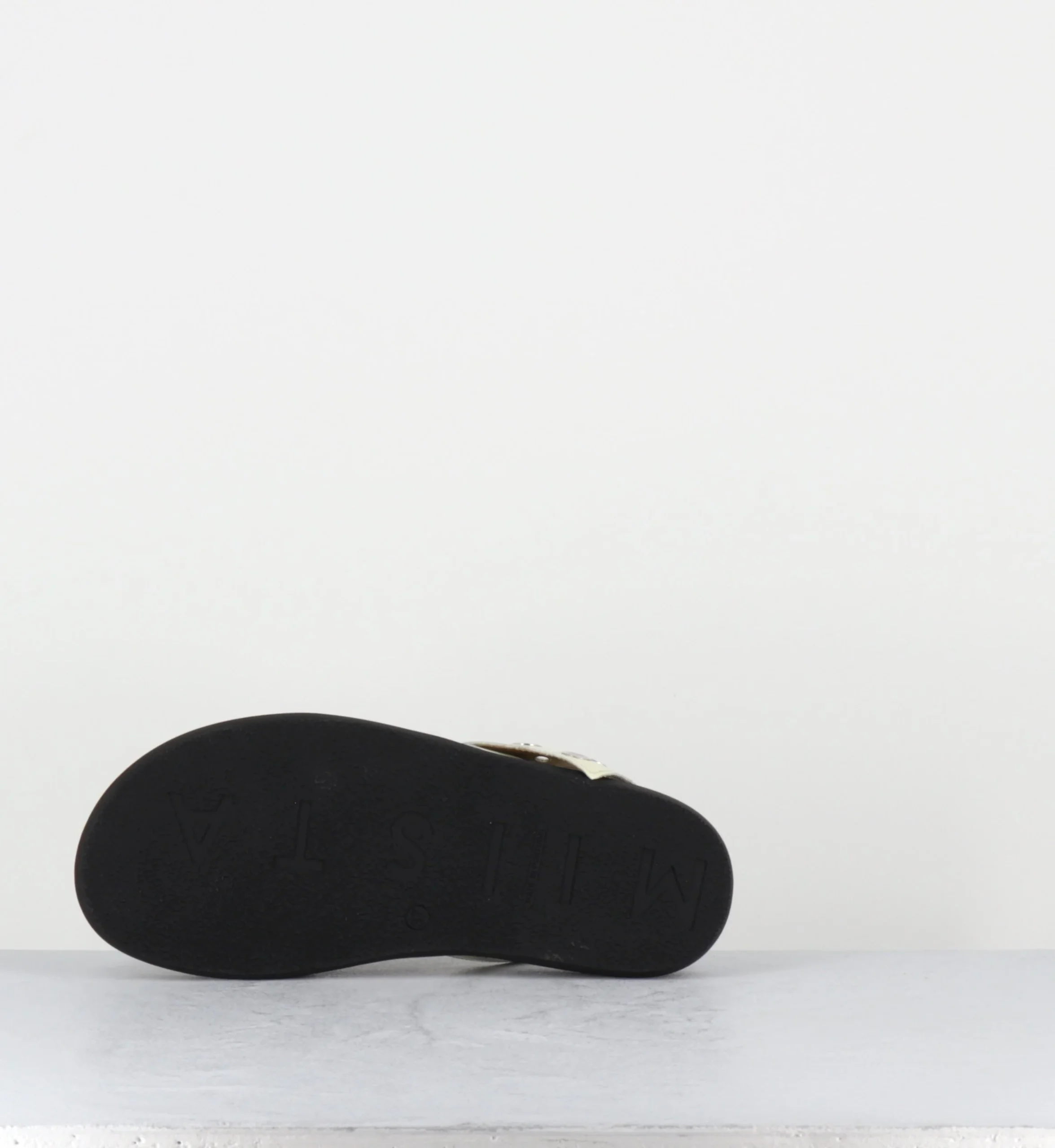 Sandales plates en cuir vernis crème bride ceinture – ZILDA VANILLA SANDAL