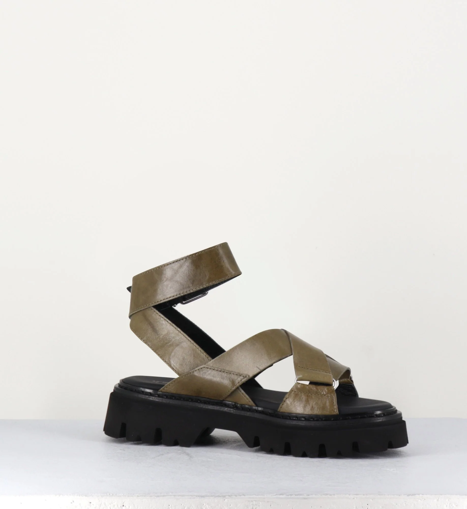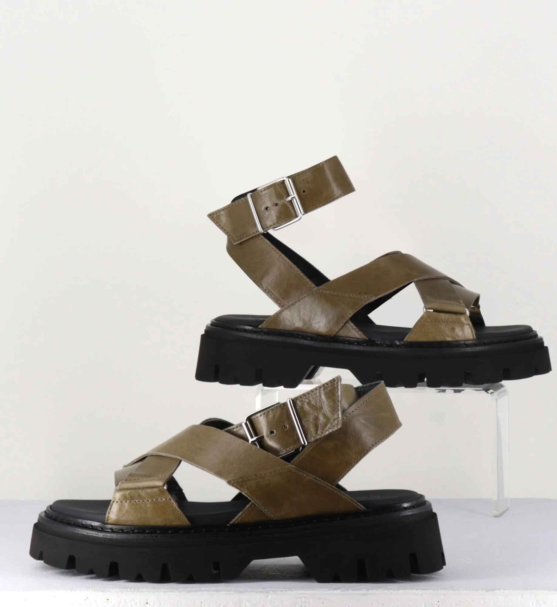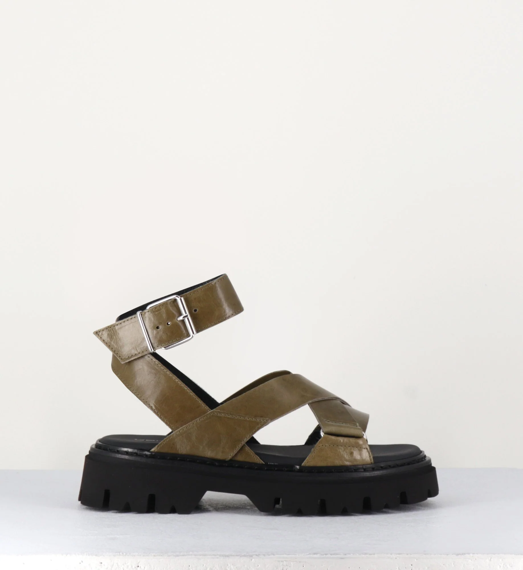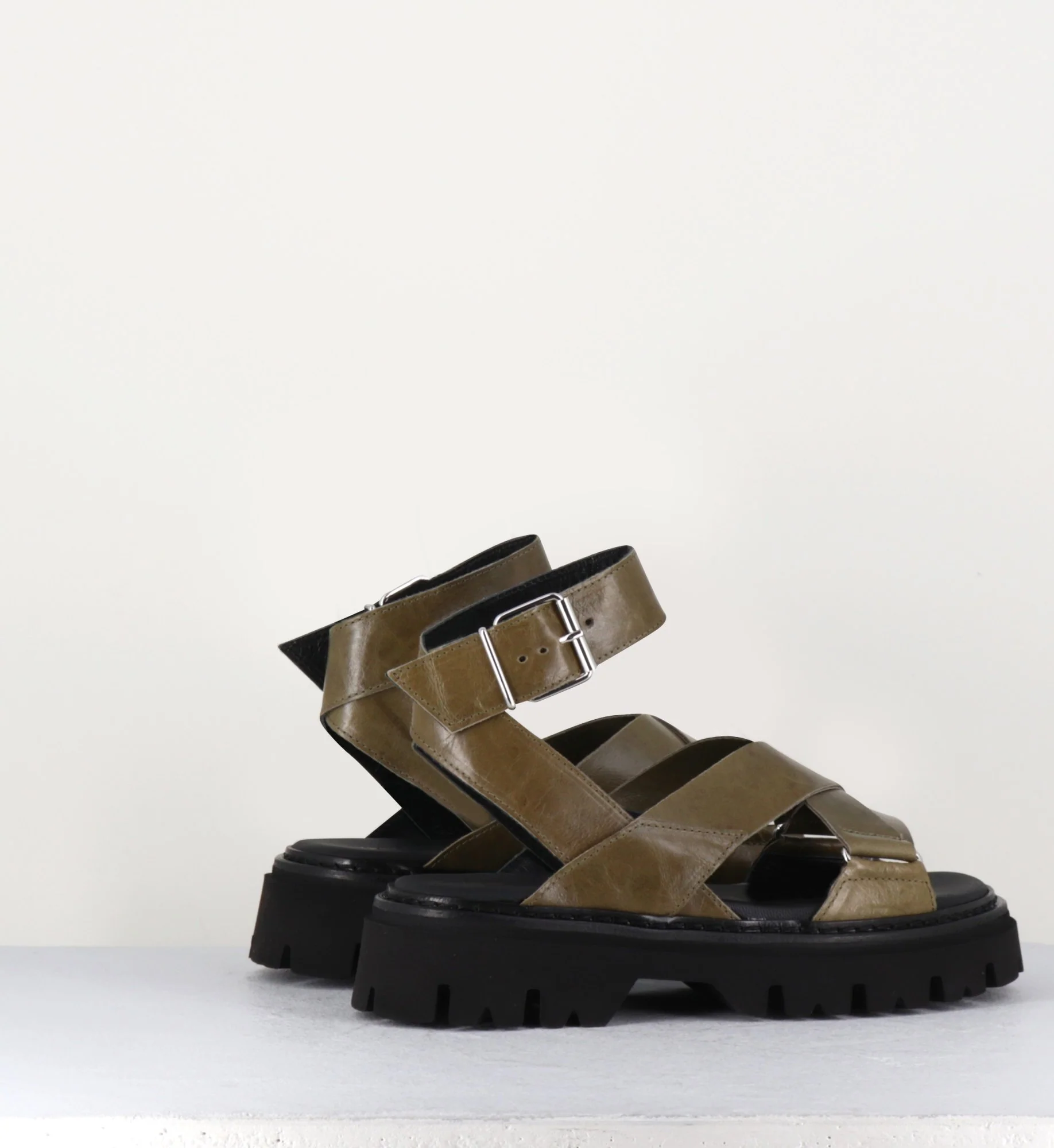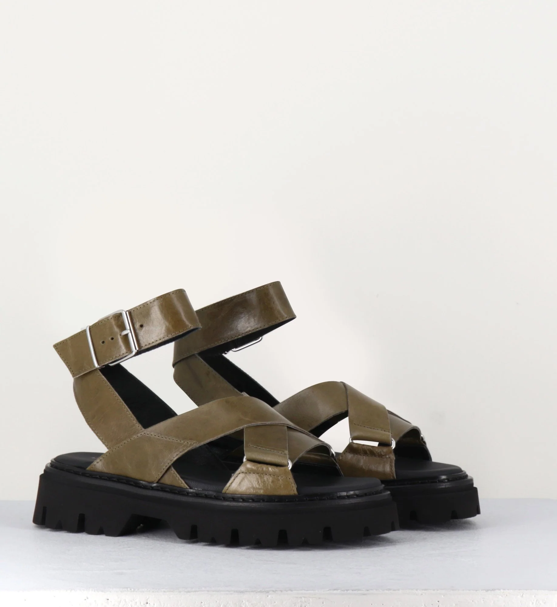 Sandales semelle épaisse en cuir khaki – PE7455 MILITARE