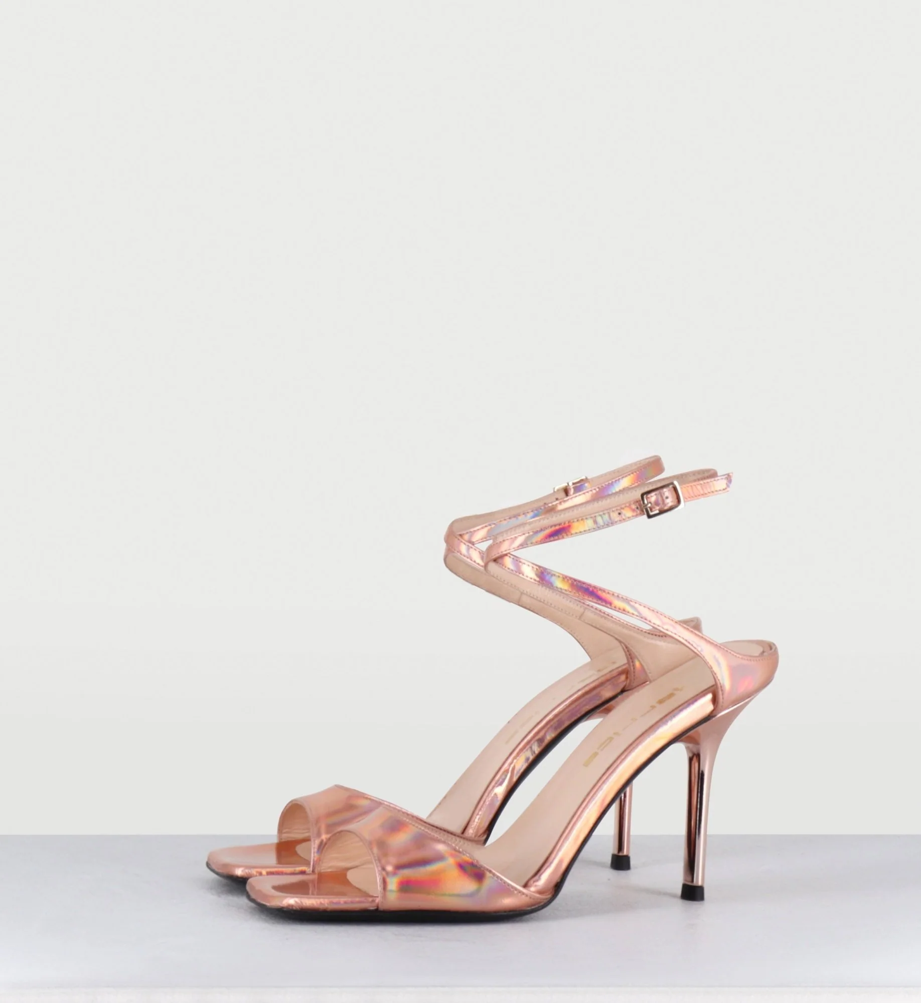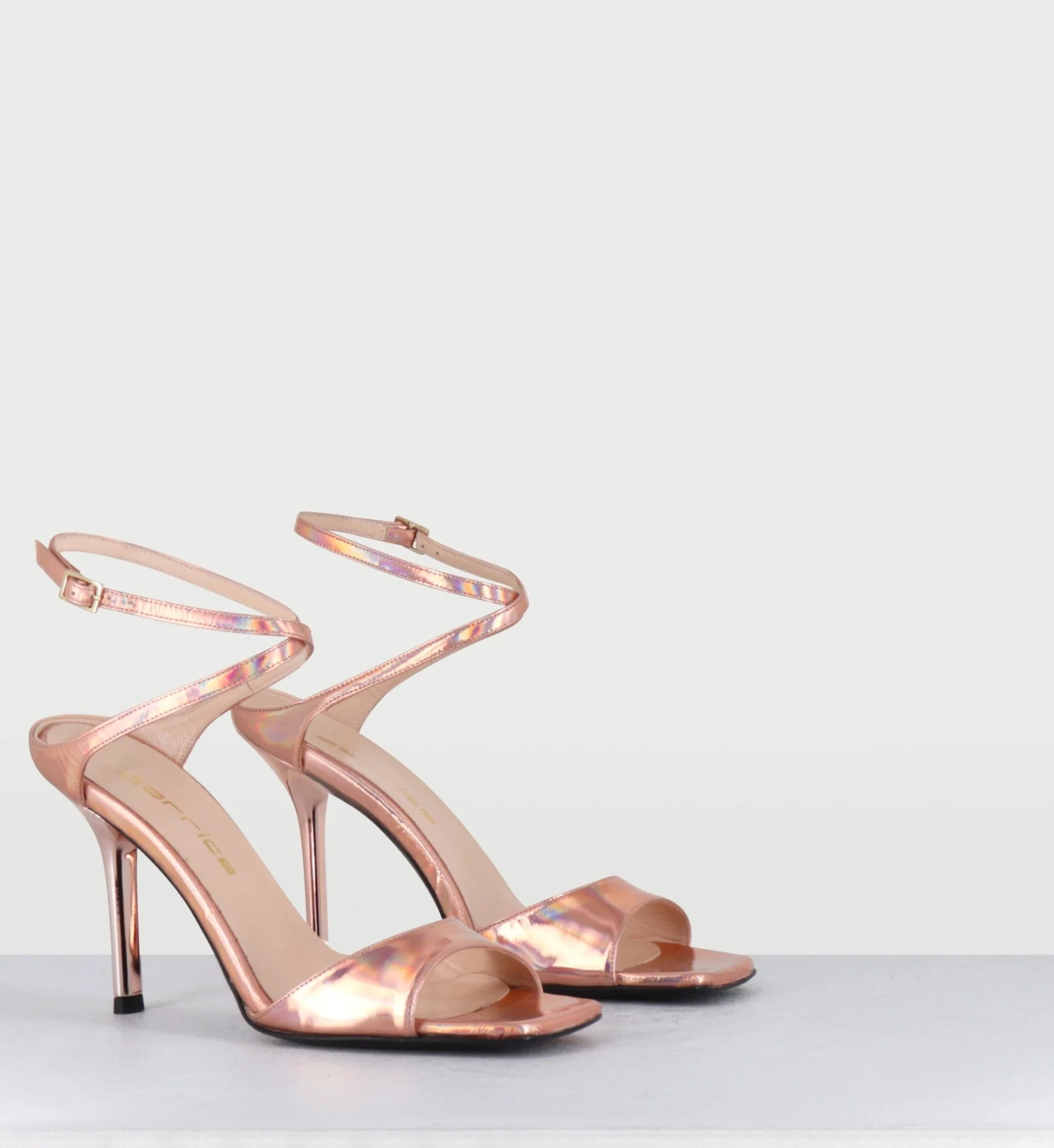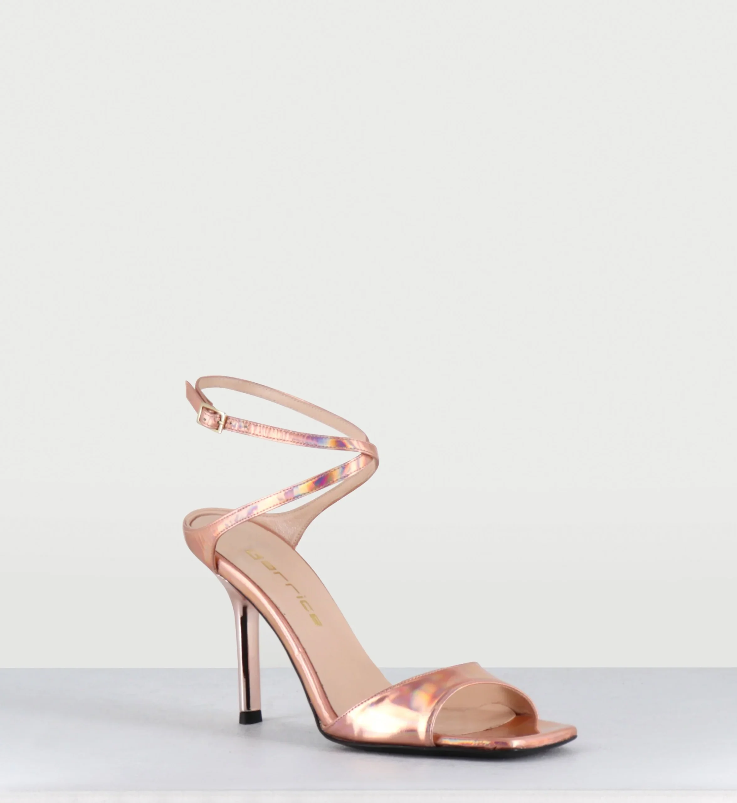 Sandales talon bout carré cuir miroir rose – ORLI SPECCHIO RAME