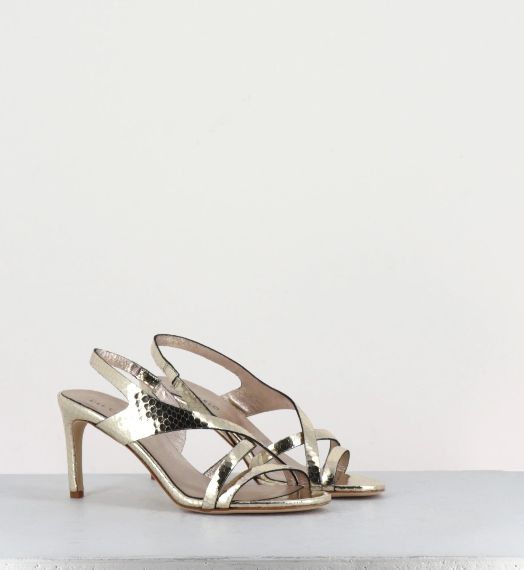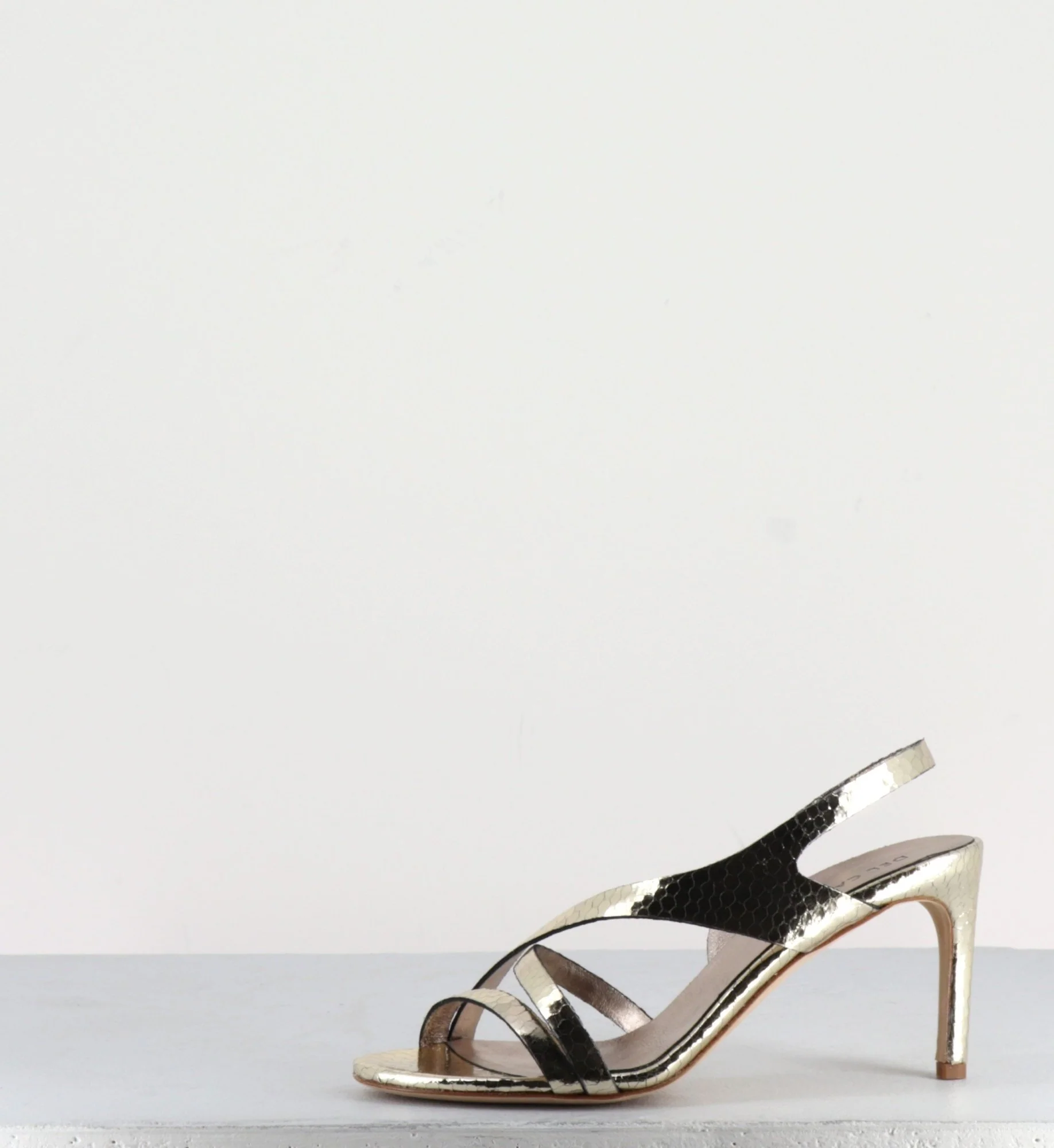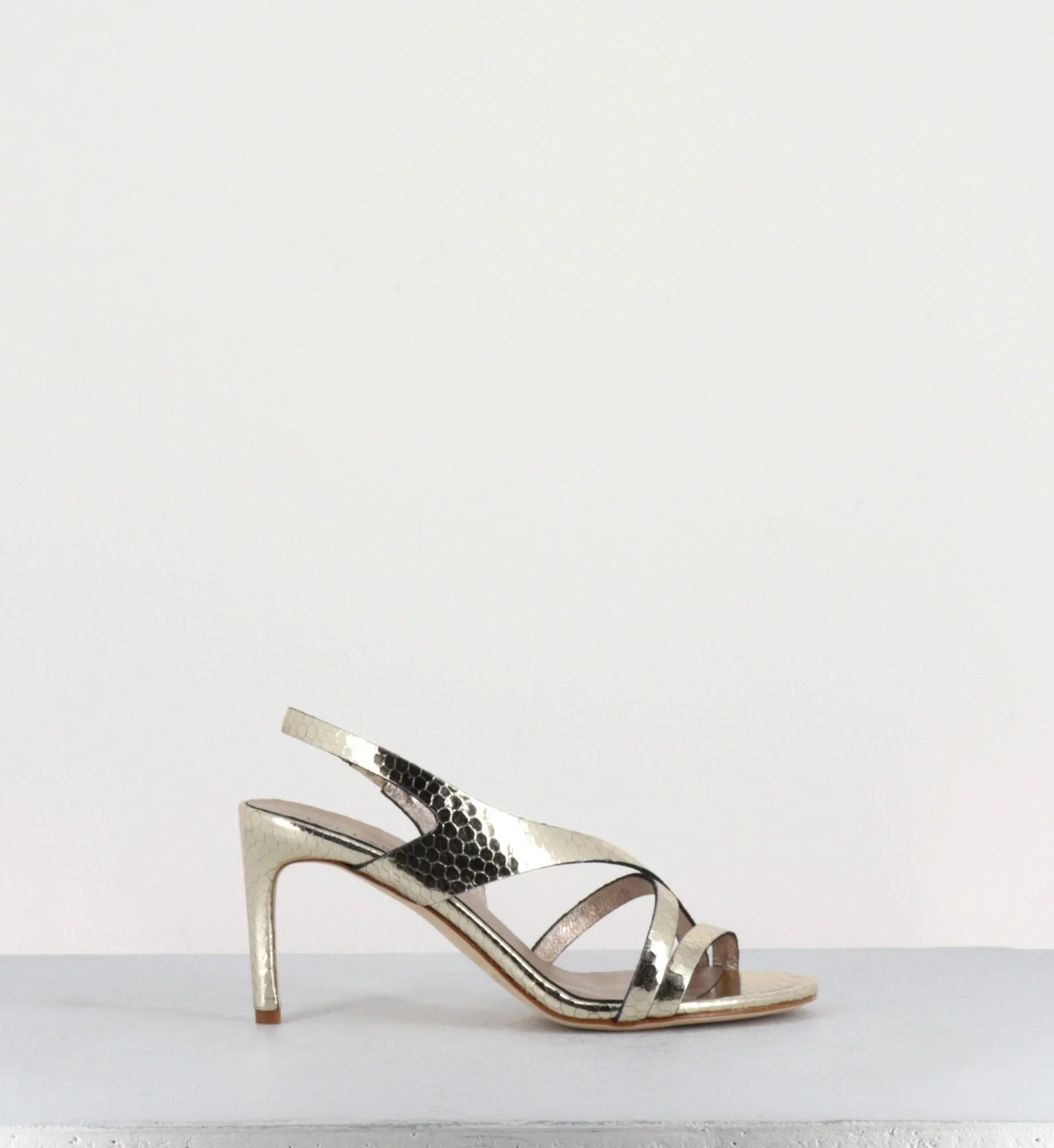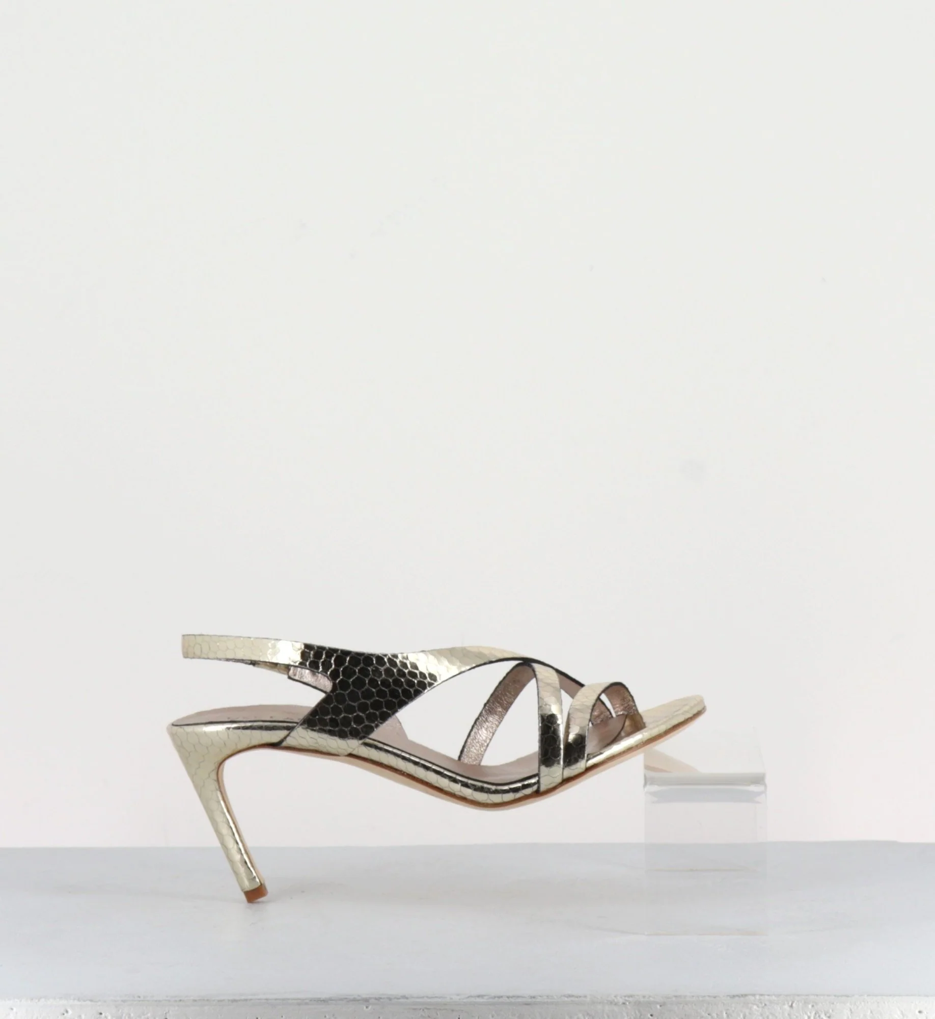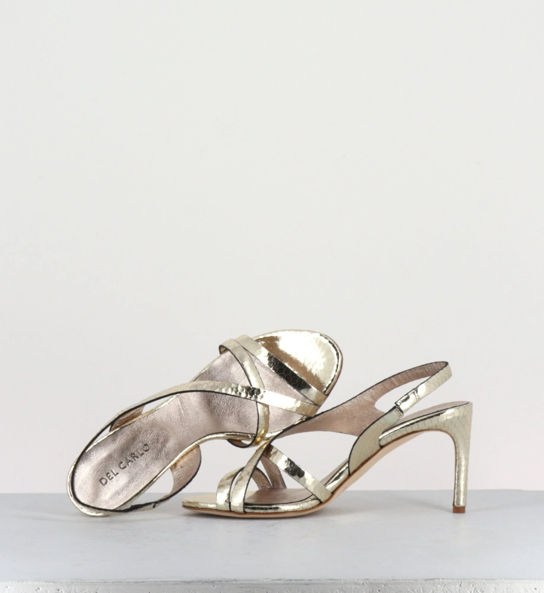 Sandales talon fin slingback en cuir métallisé doré – 11527 VIPER PLATINO
