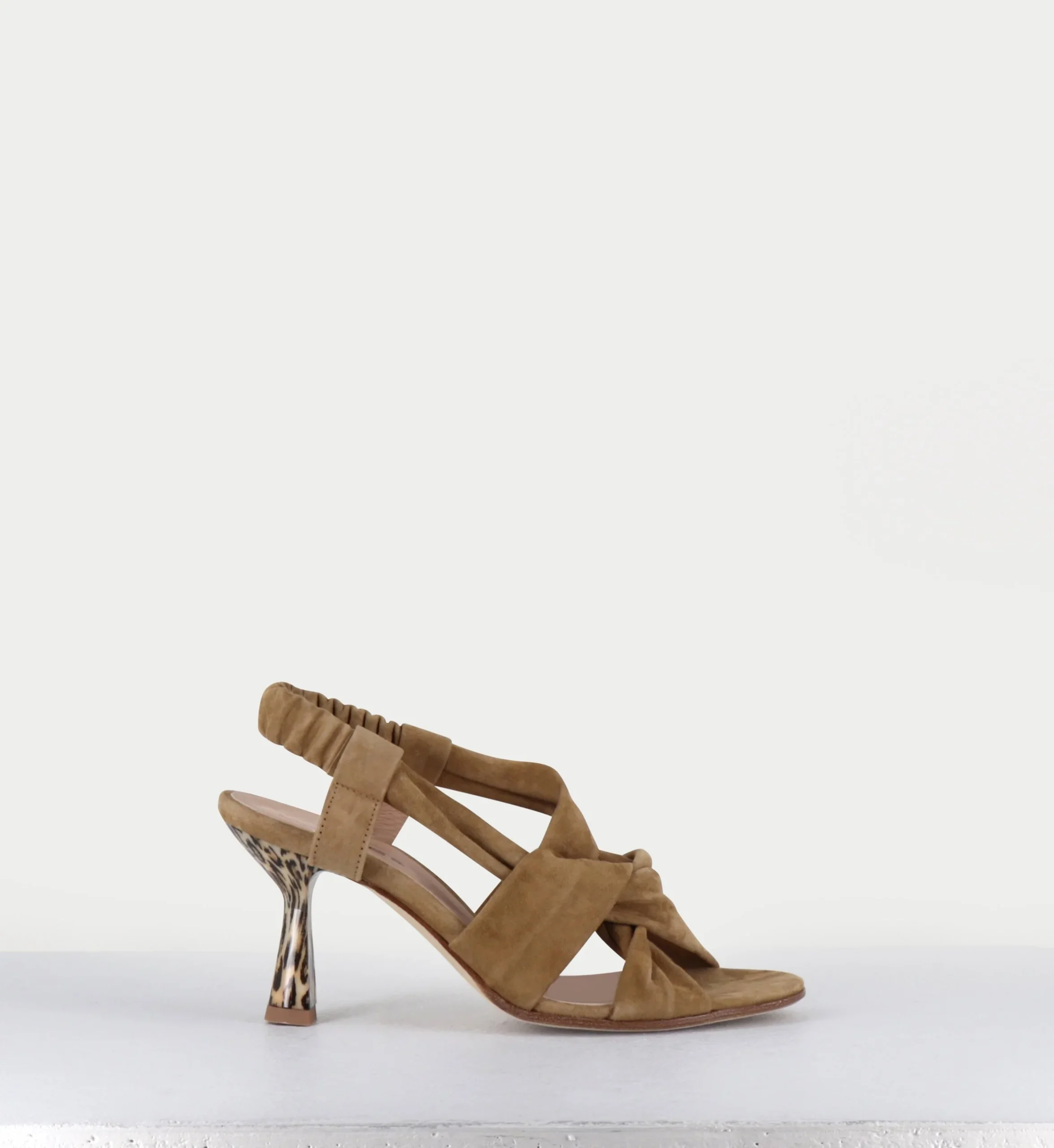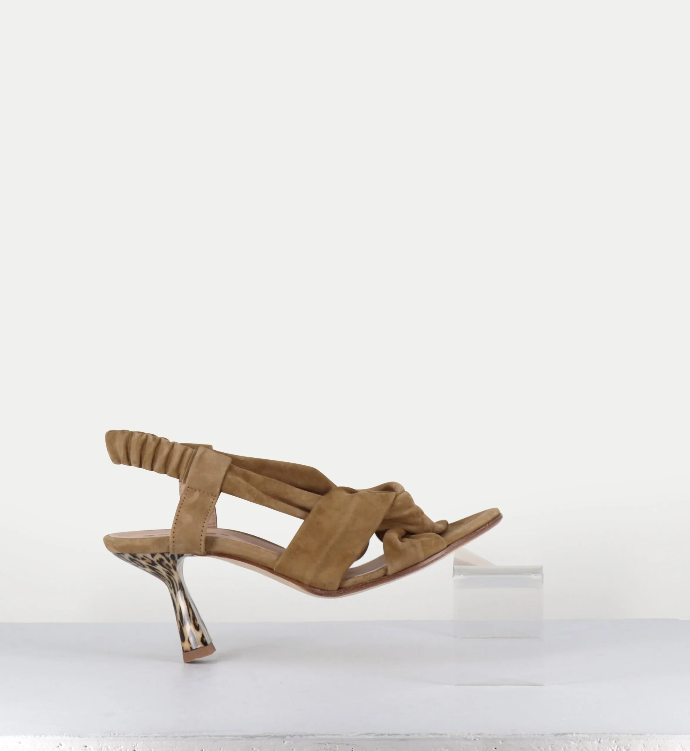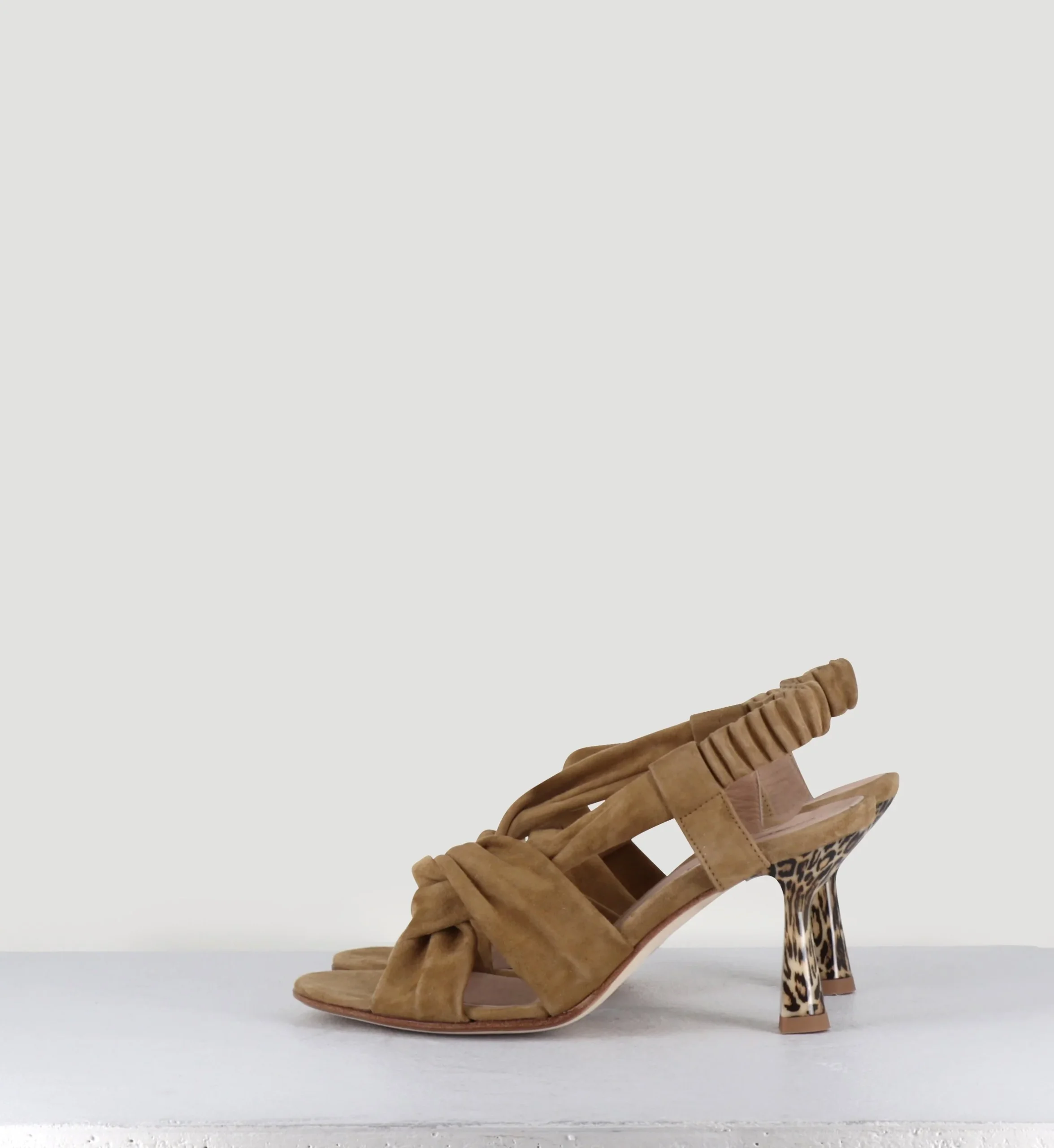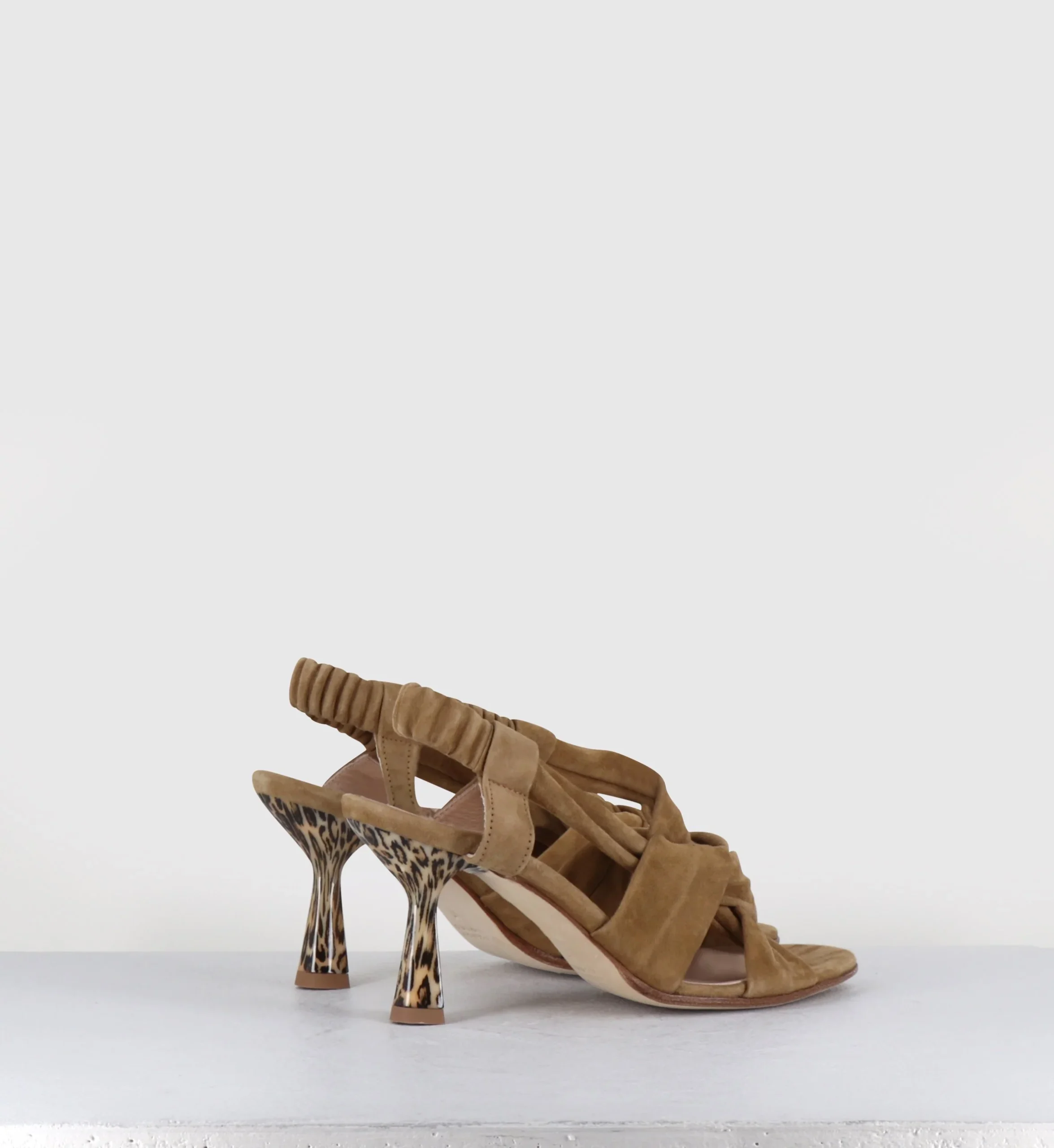 Sandales talon léopard en daim marron – CAPA MILITARE
