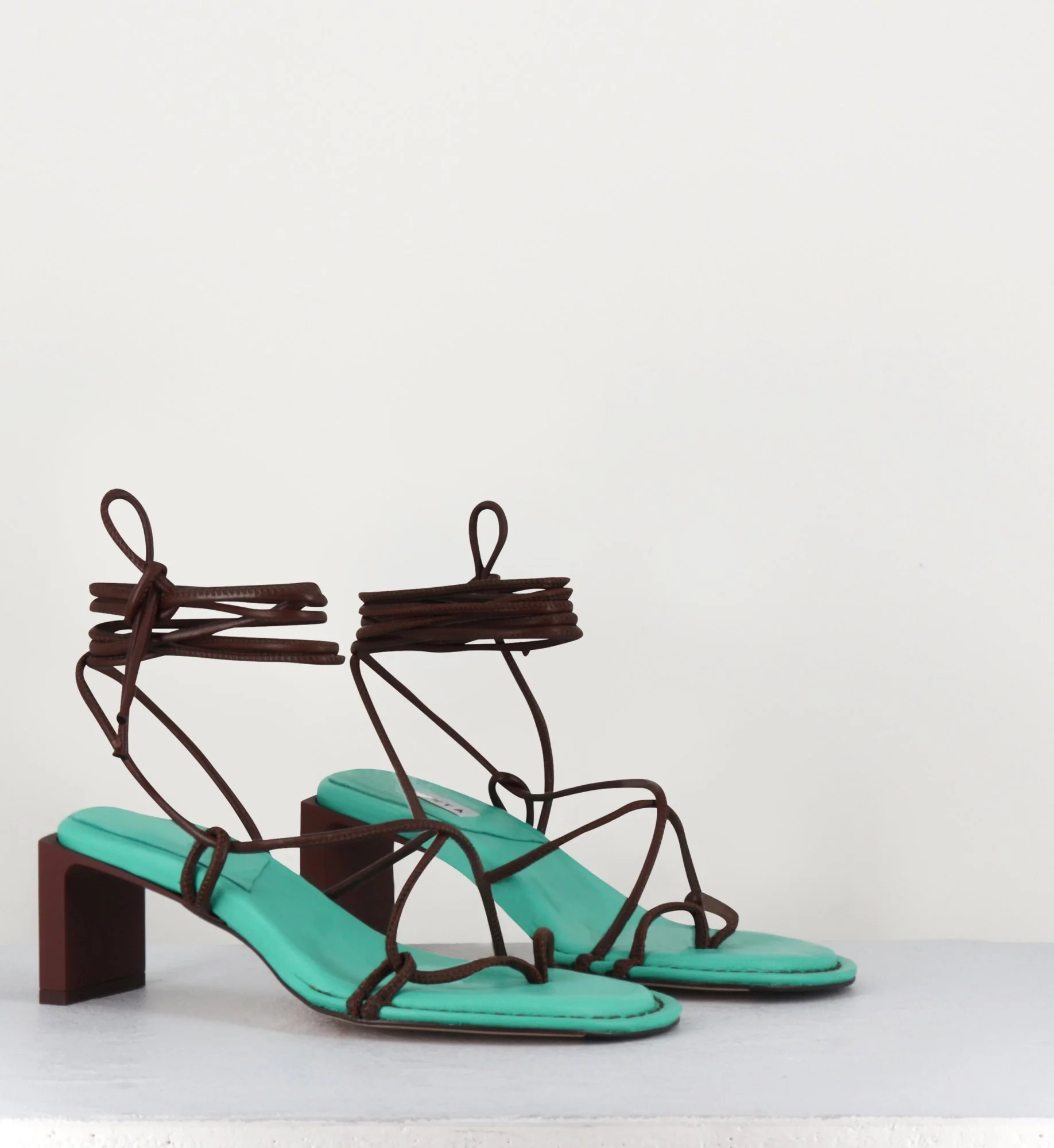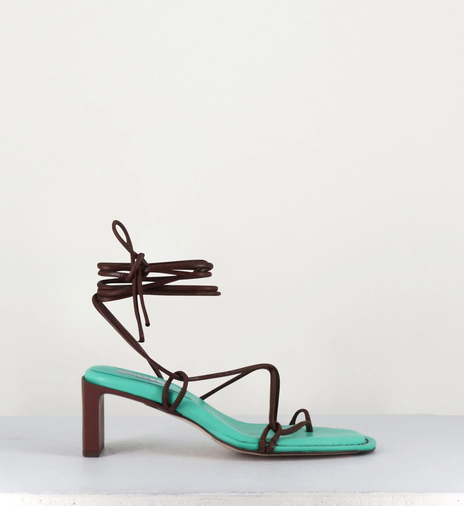 Sandales vertes à fines lanières de cuir marron- ALBERTA GREEN SANDALS