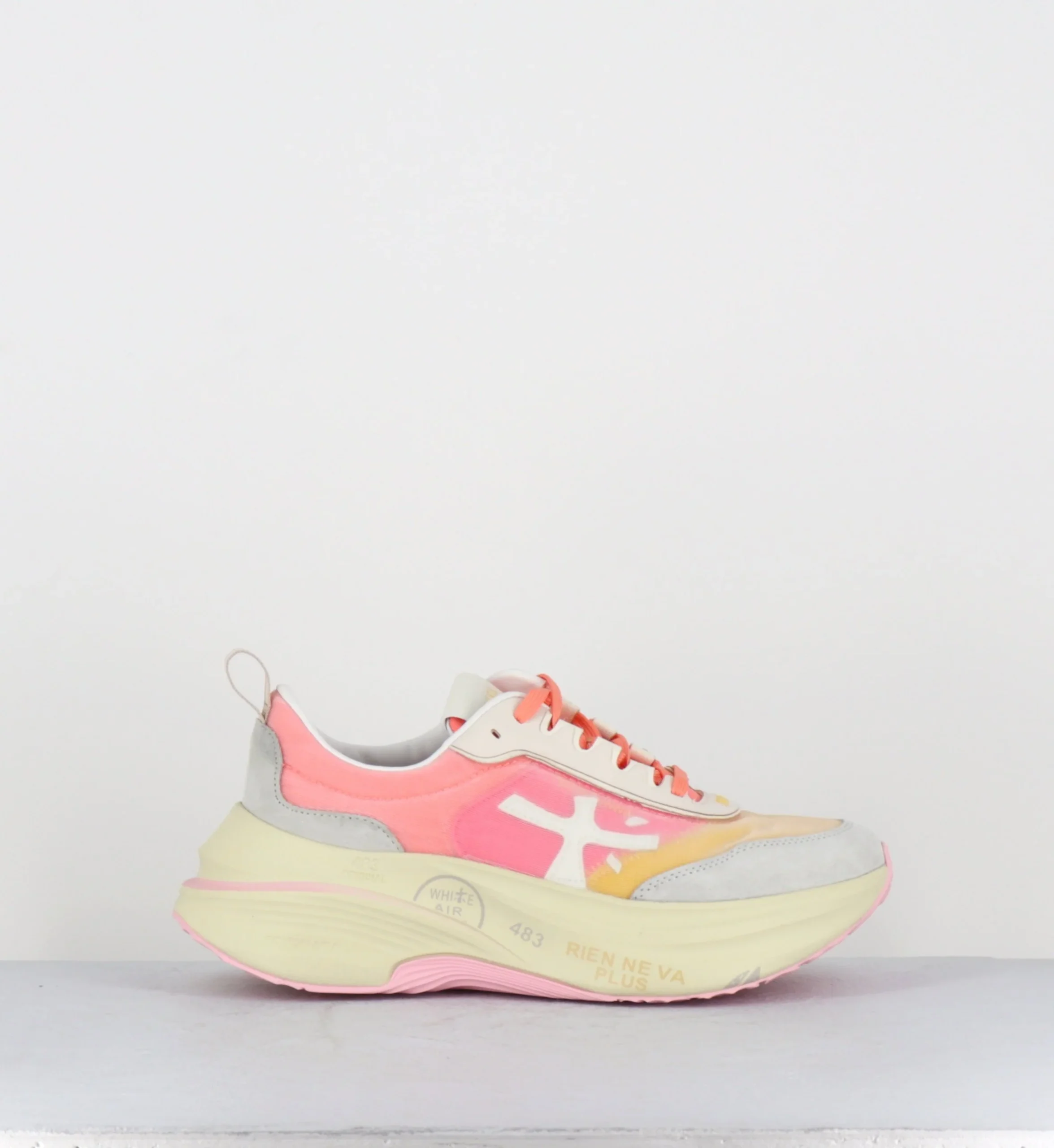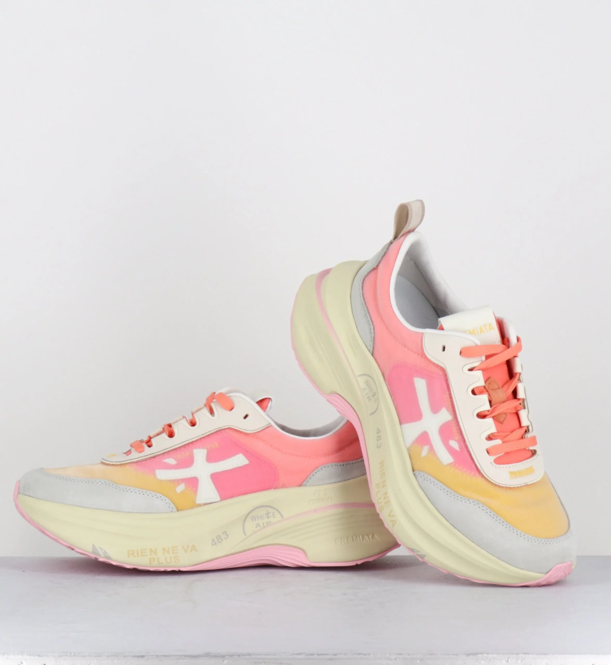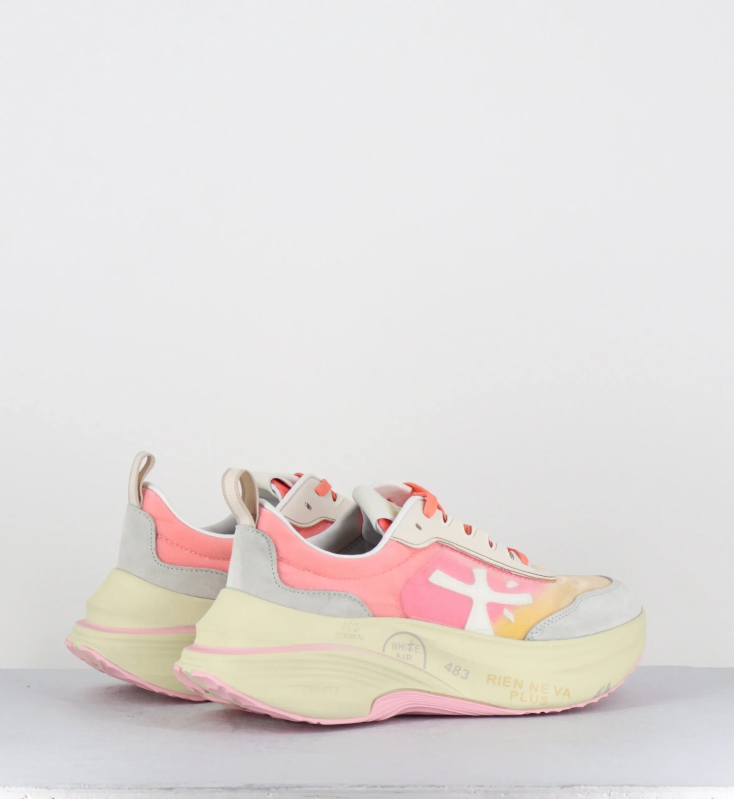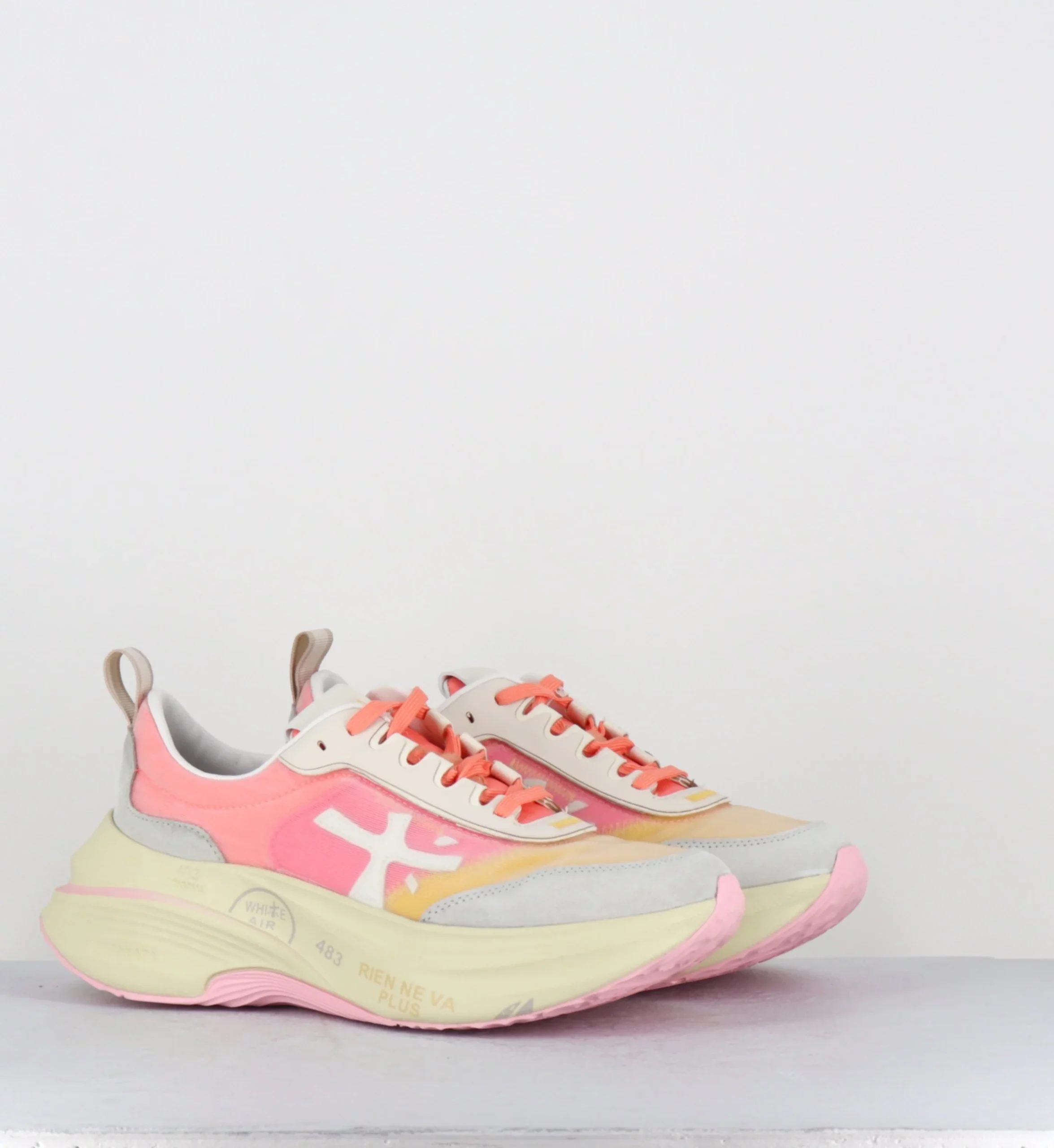 Sneakers semelle épaisse légèrecuir et toile rose , jaune, orange