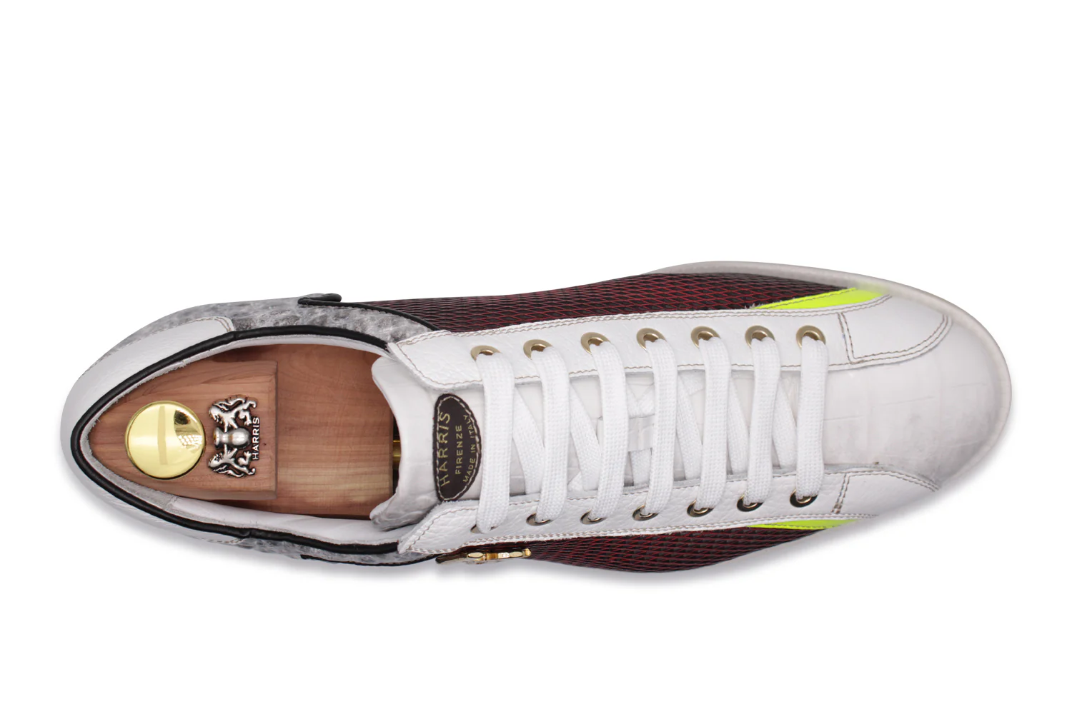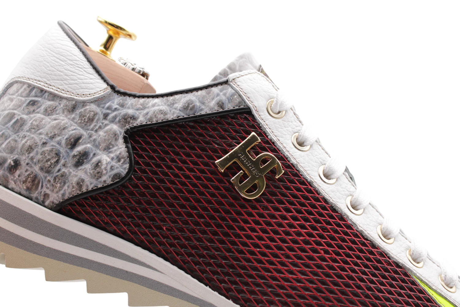 Design unique et raffiné pour cette sneaker en cuir avec un personnage contemporain et artisanal. Fabriqué en cuir imprimé de crocodile et imprimement brossé avec une impression à effets de transfert en rouge, il se démarque d’un design qui combine l’élégance et la polyvalence. La semelle flexible garantit le confort de toute la journée, tandis que les détails détachés tels que la plaque Harris et les détails fluorescents améliorent une esthétique exclusive et recherchée après.